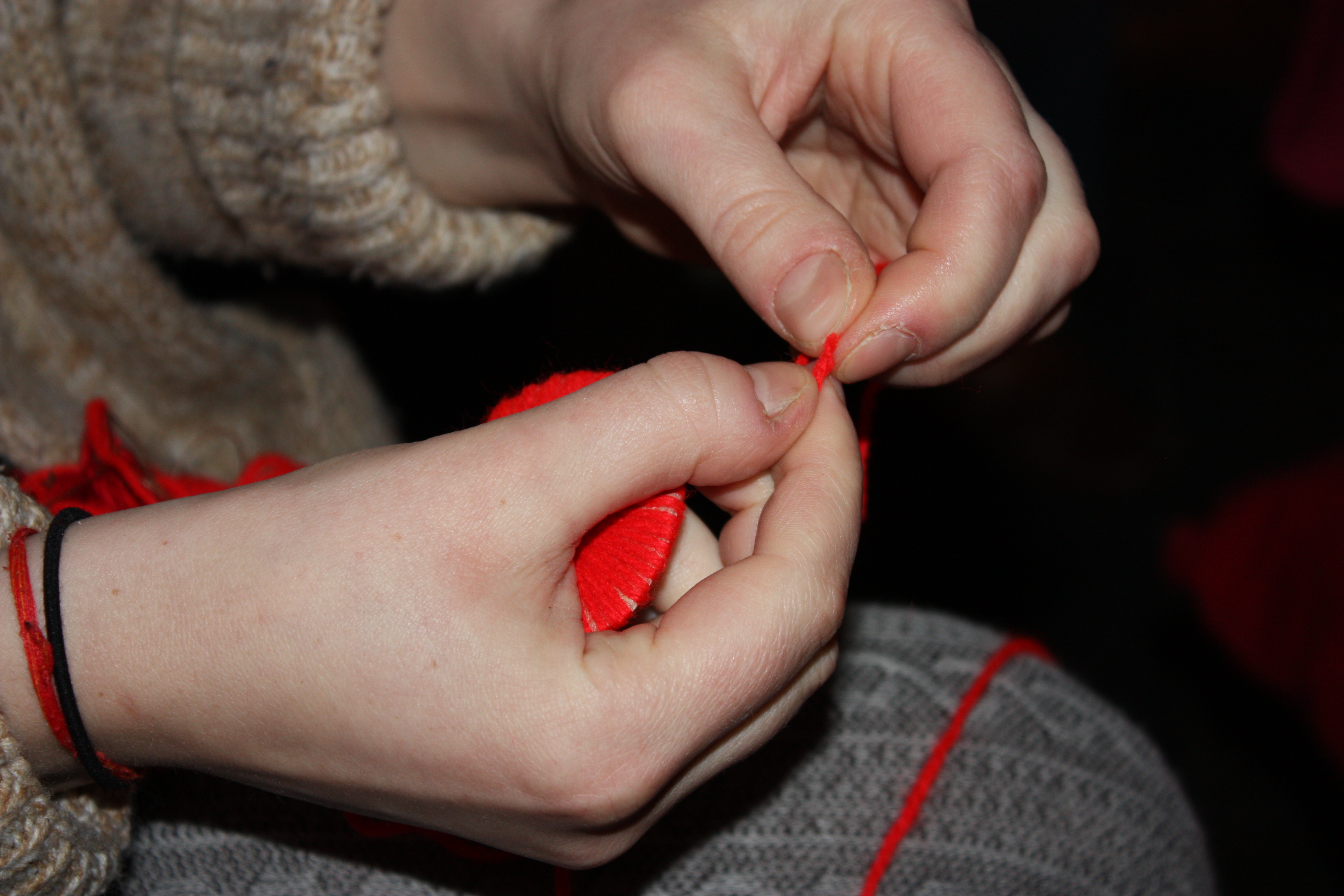 As it was 1st December old wool was turned into Christmas pom-poms.