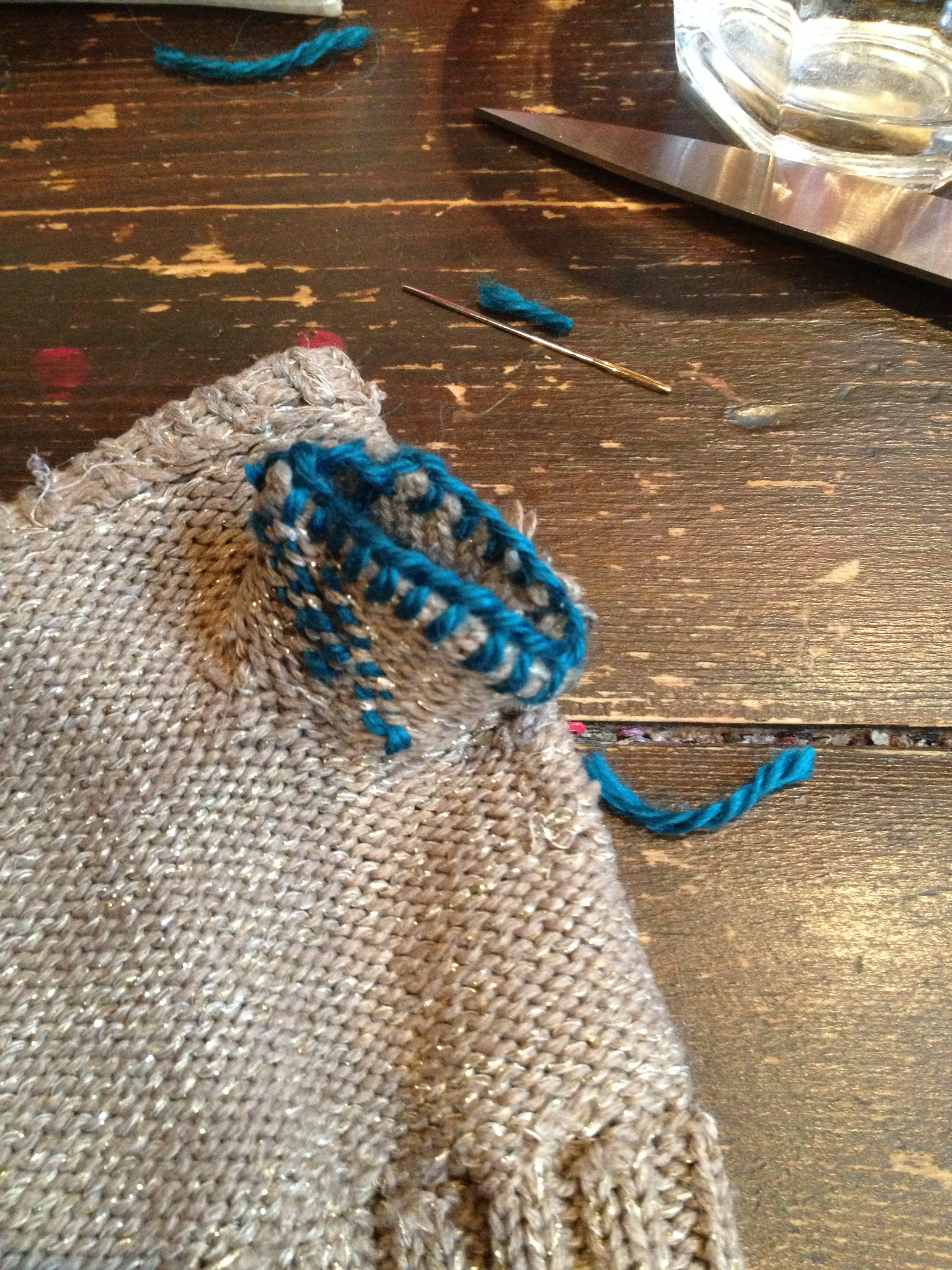 then blanket stitch to reinforce the edge and to stop it laddering again