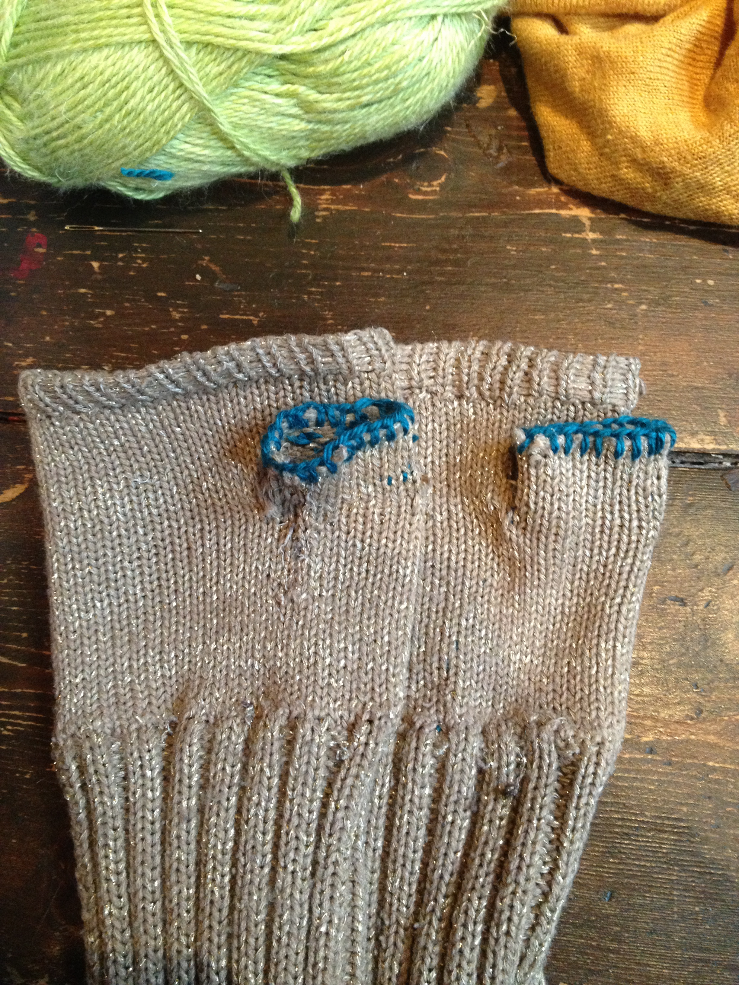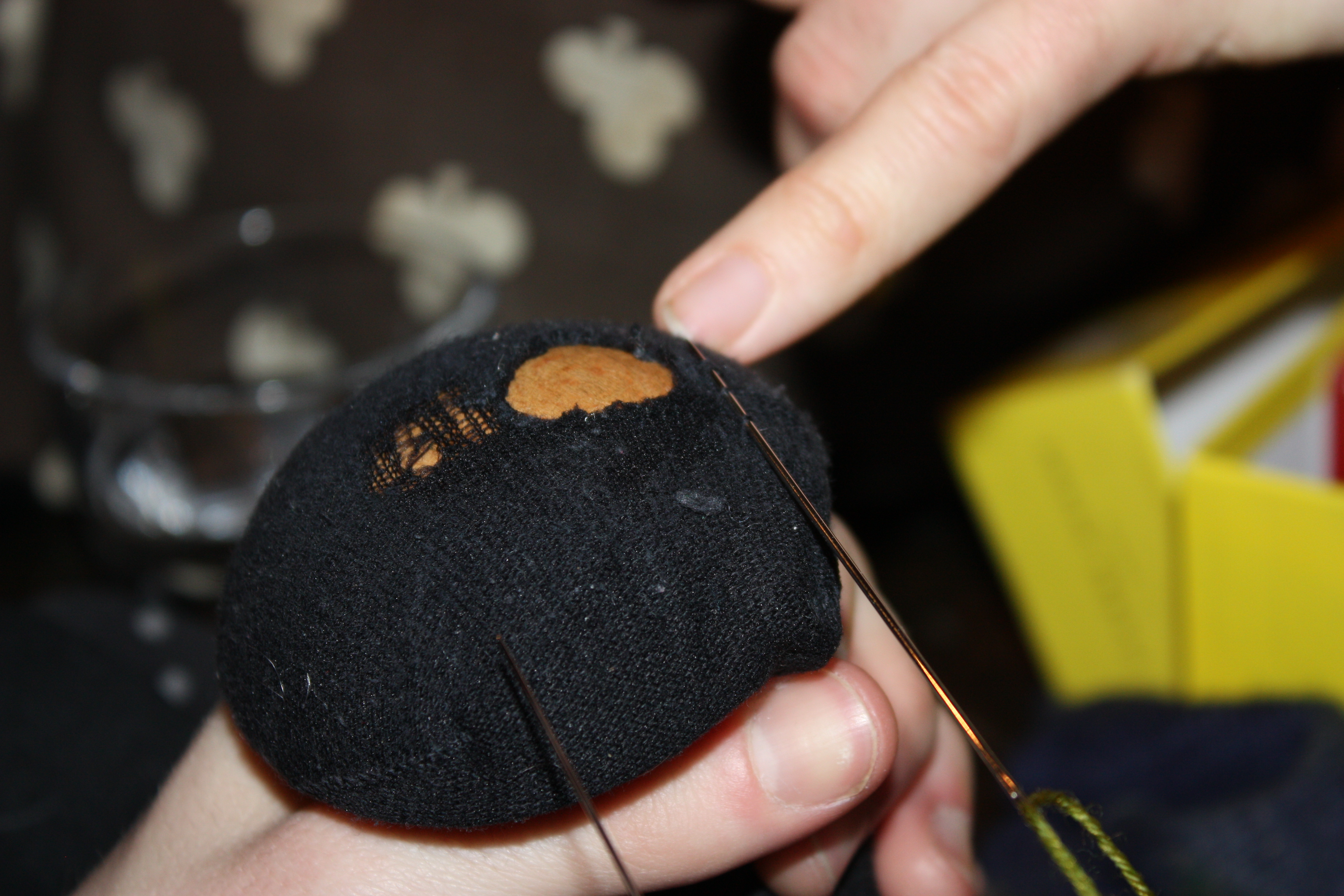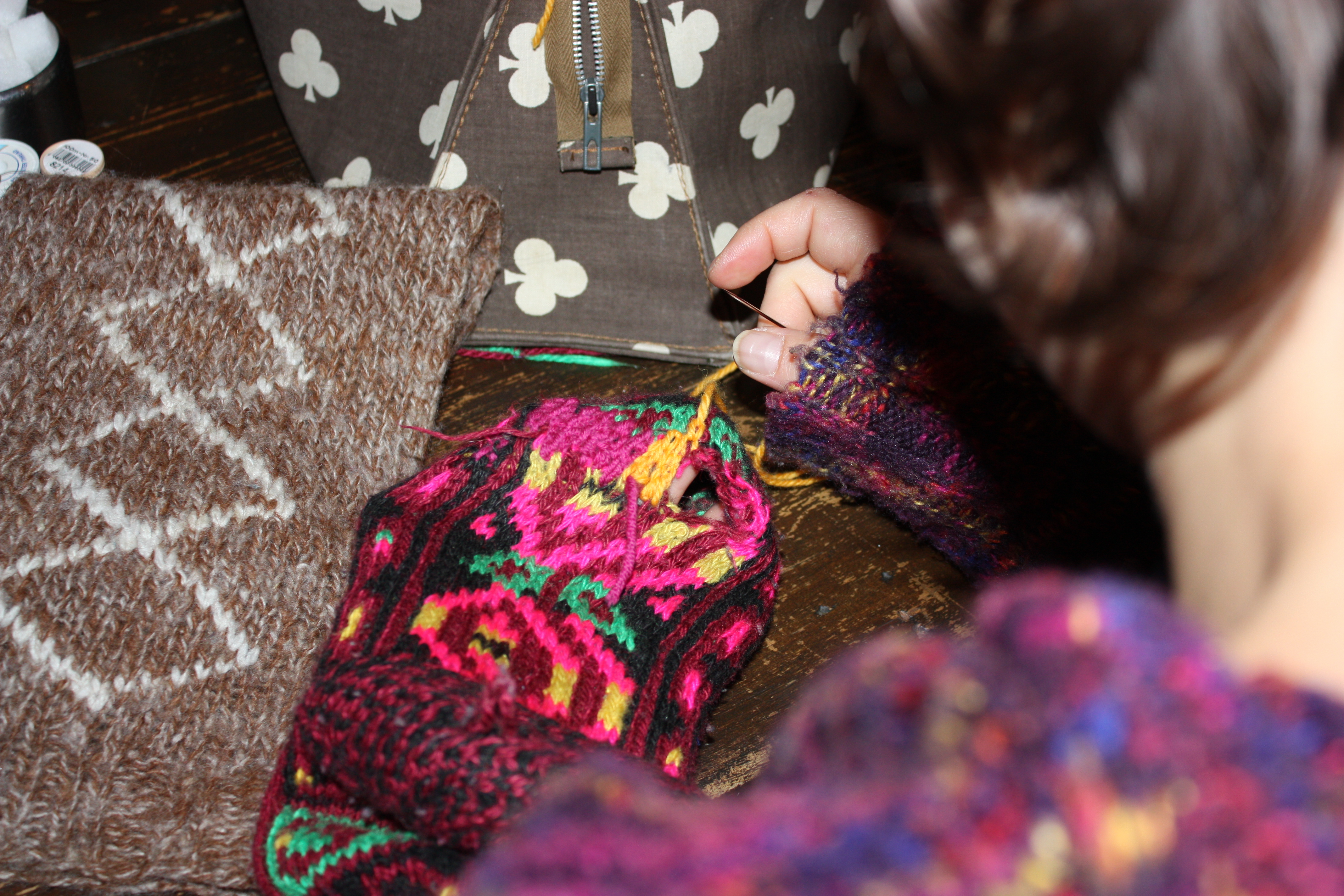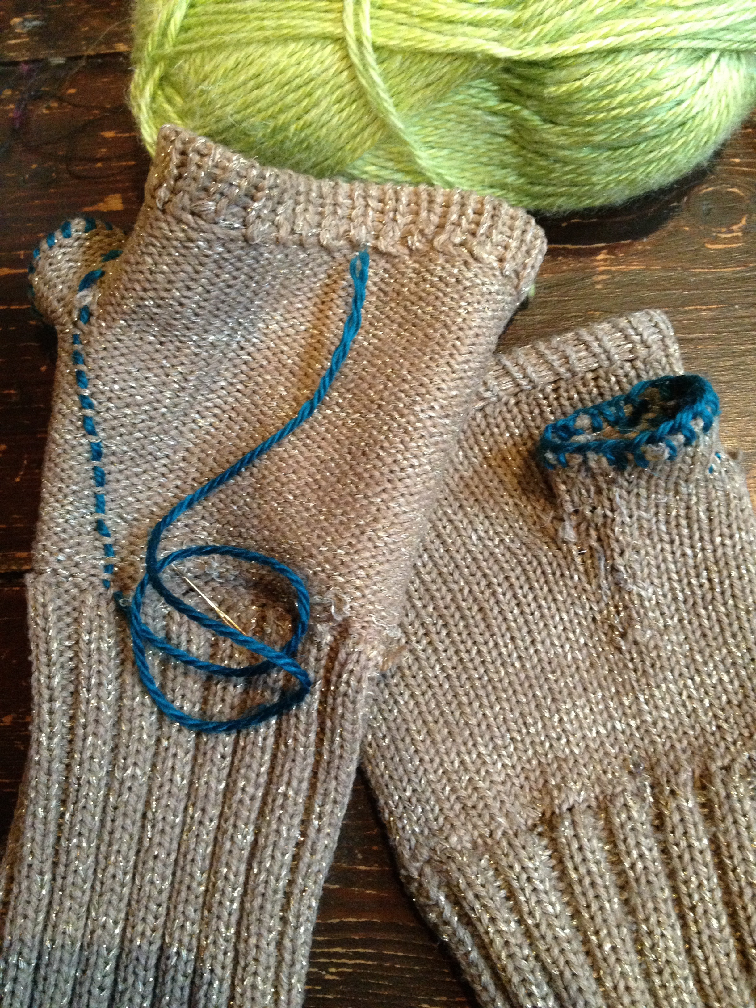 before sewing the ends diagonally across the inside of the glove (because according to Tom knots won’t hold).