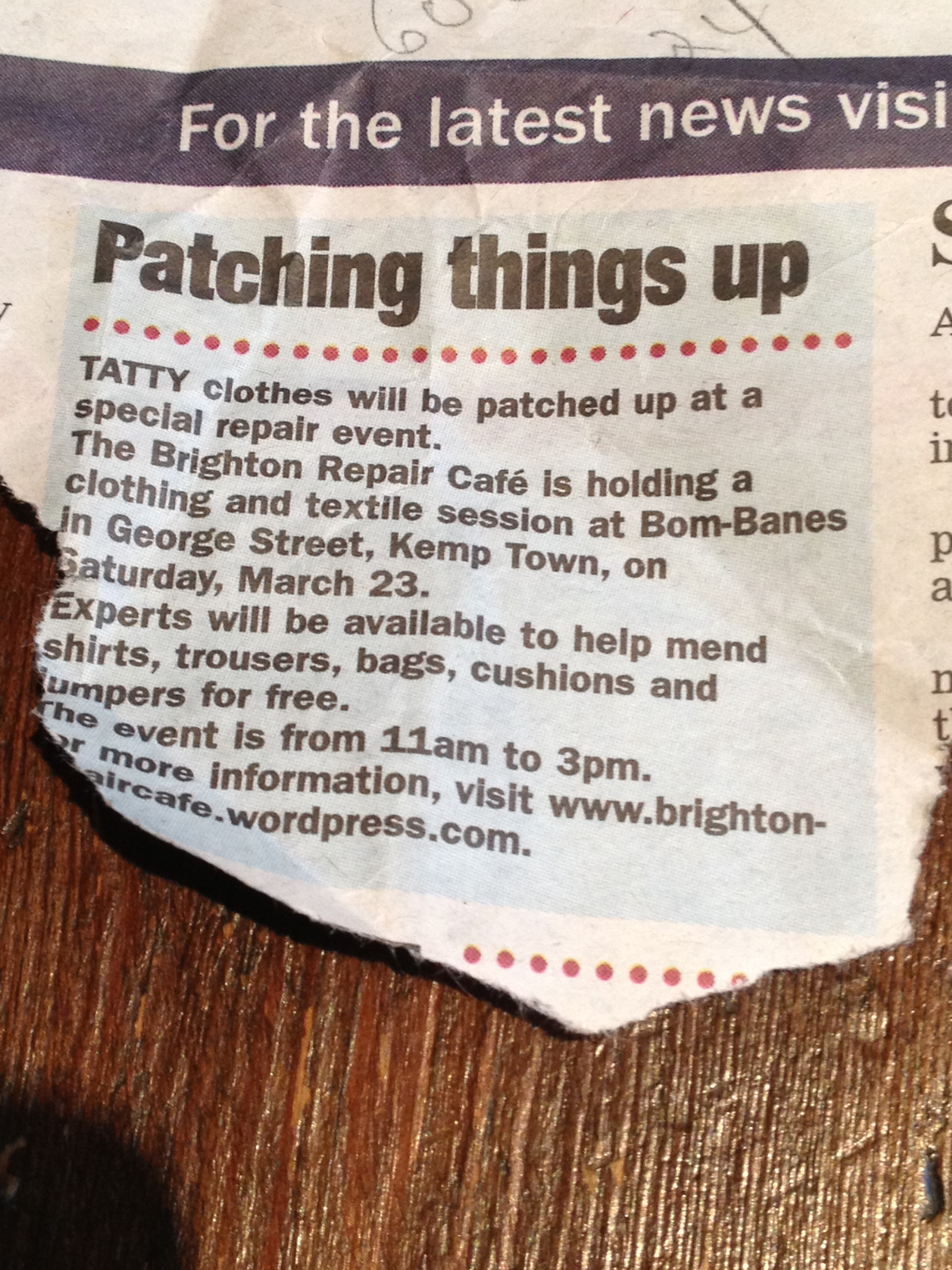 Last Saturday’s Repair Cafe was great fun. We met lots of new faces some of whom came along having seen this in The Argus: