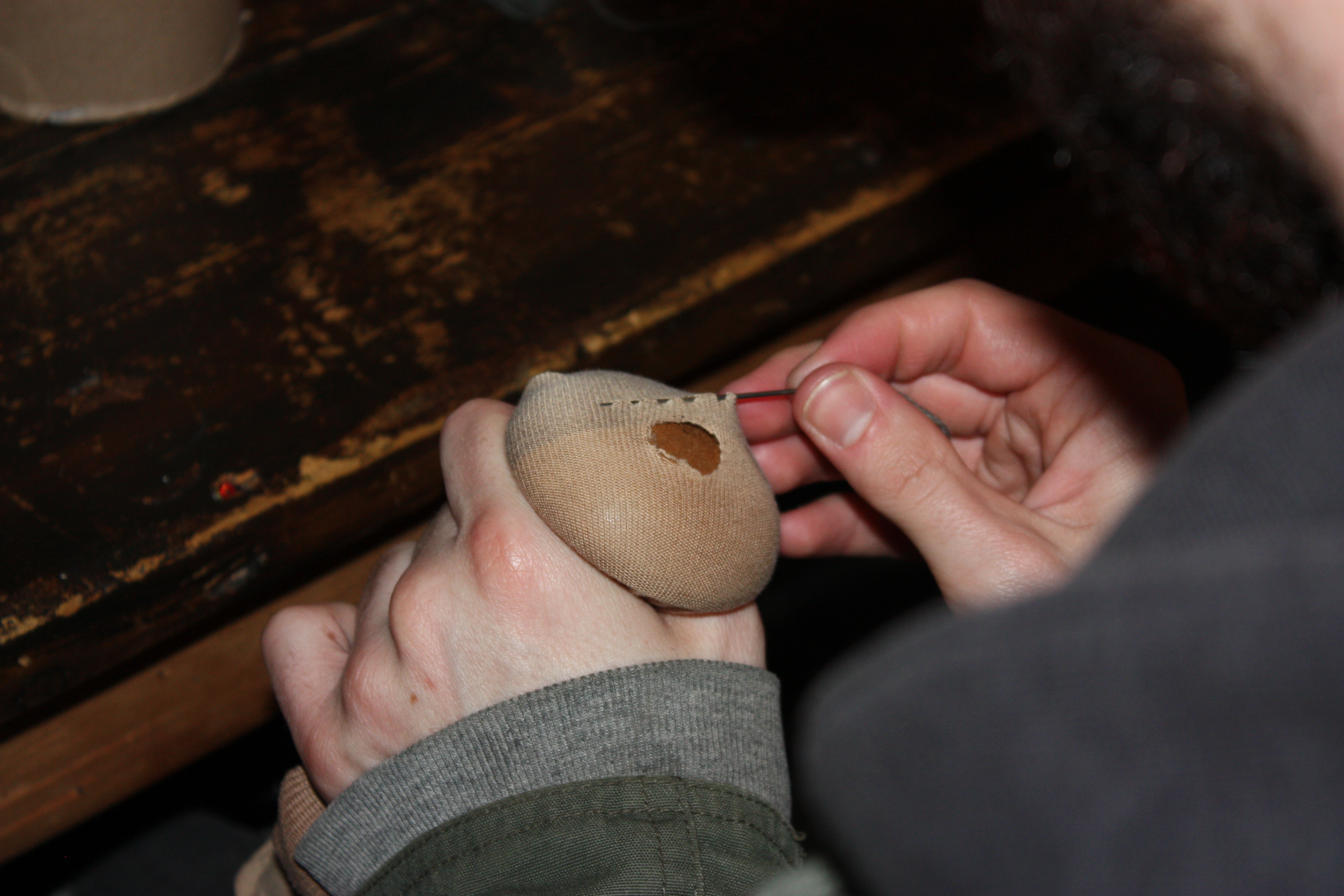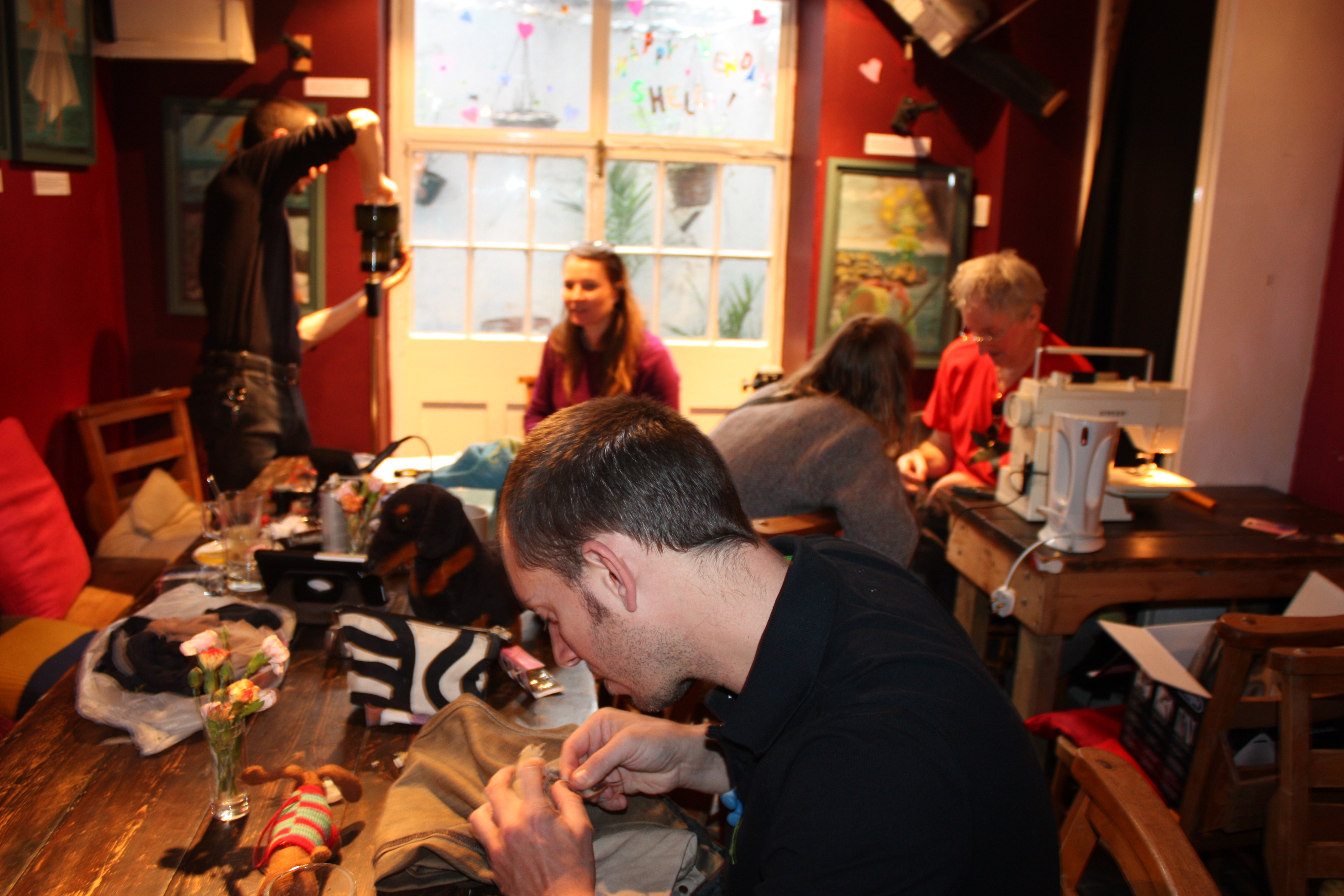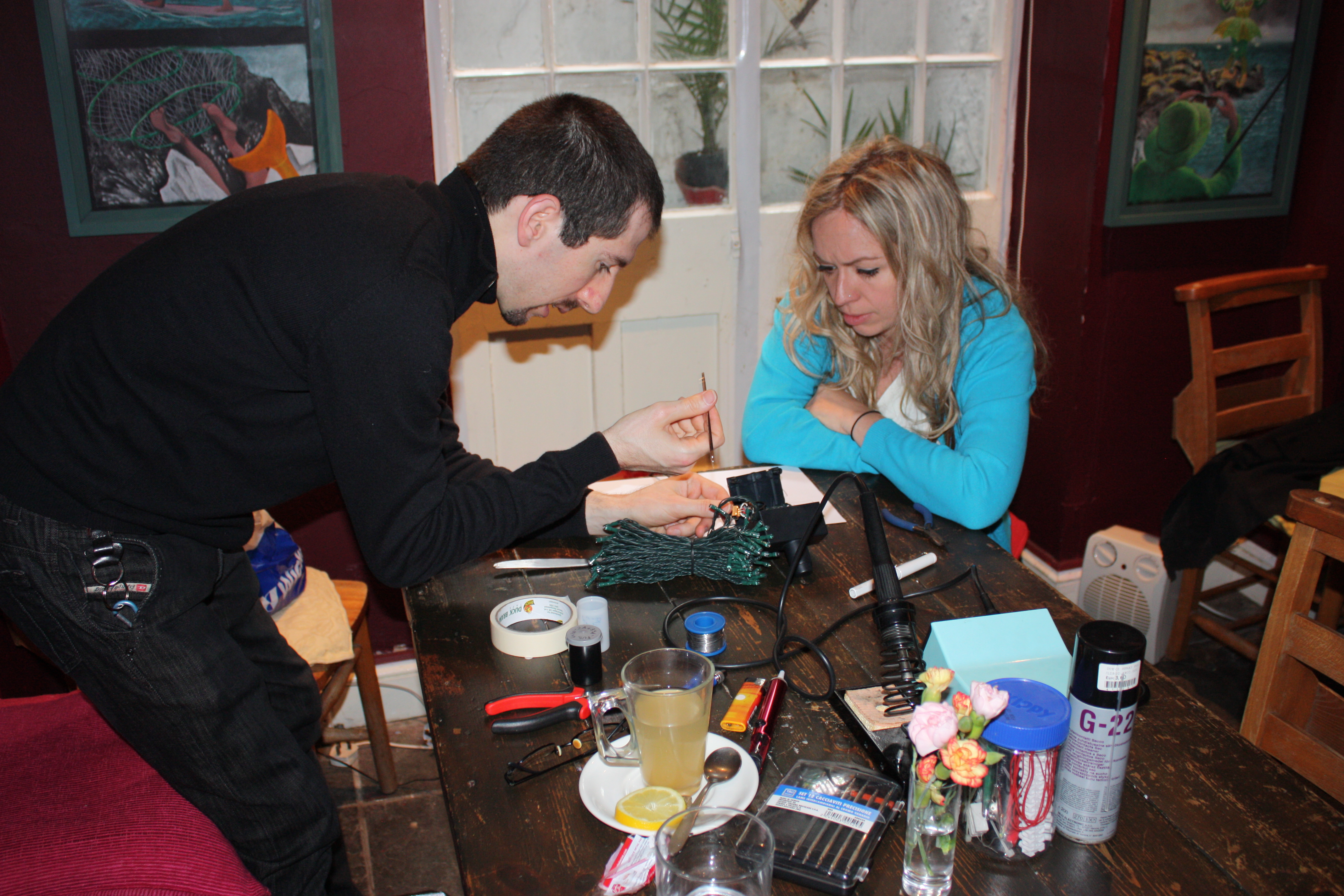 Then Mattia moved on to help Sam repair her reading lamp whilst others darned, sewed and repaired jewellery.