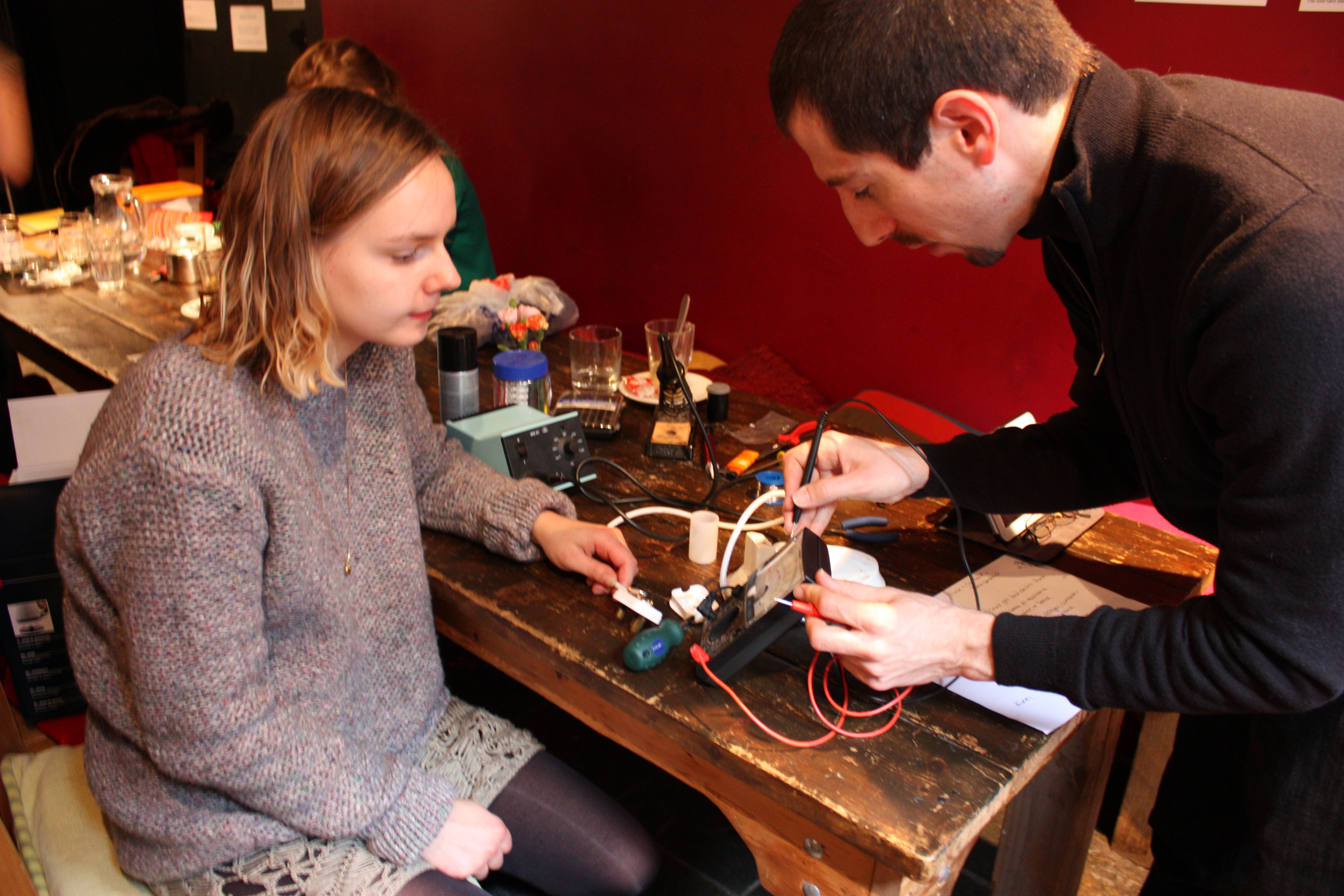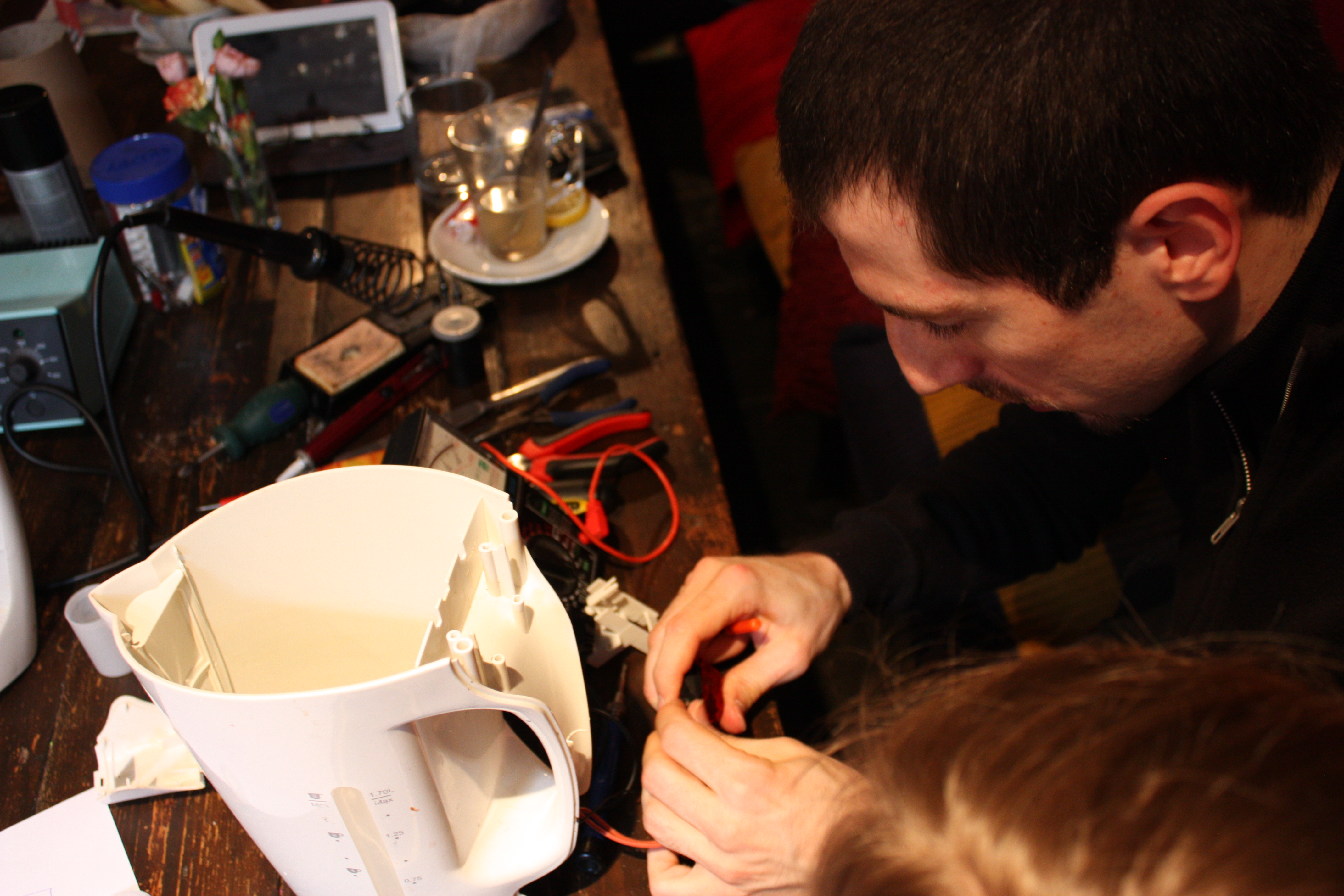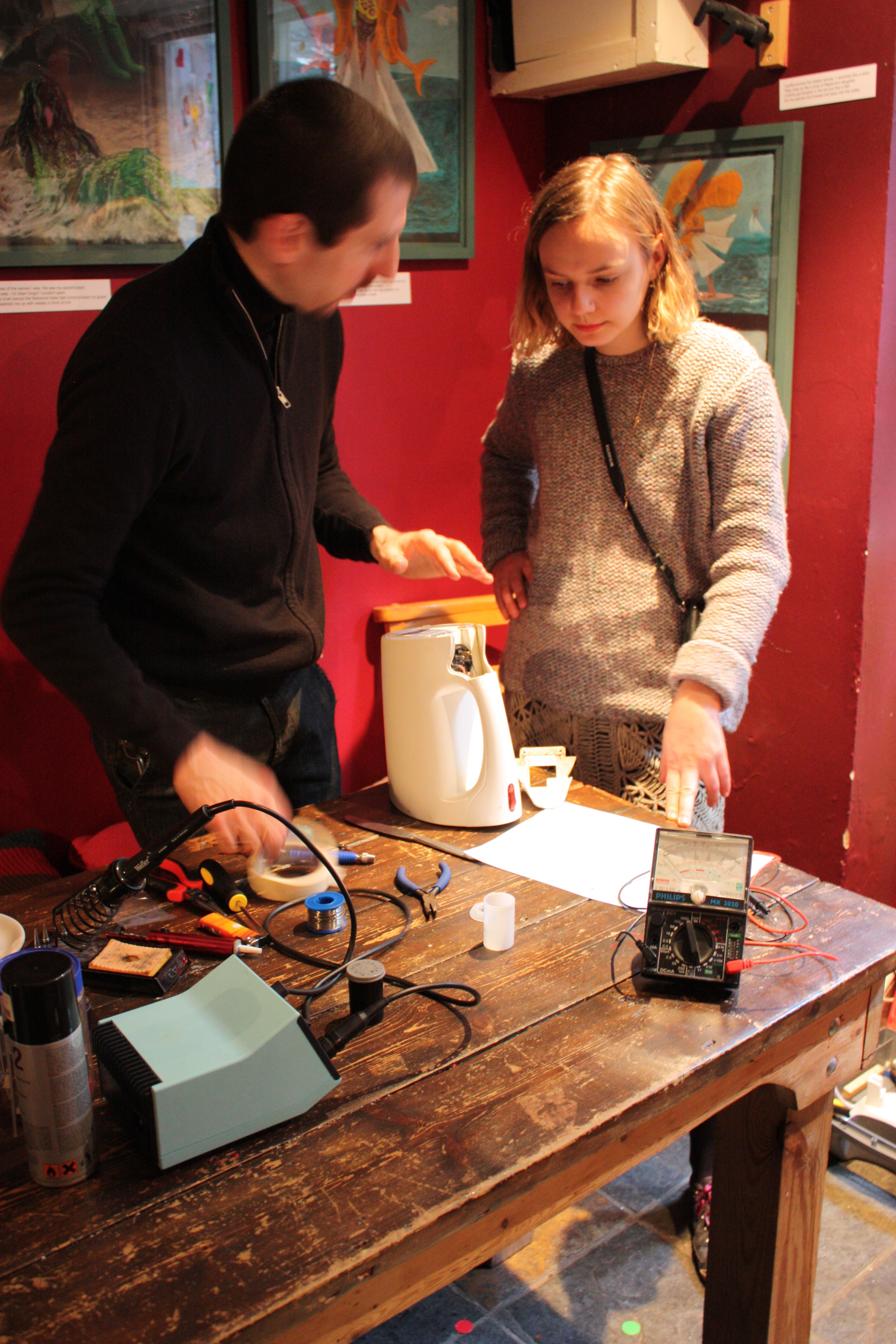Then Zosia of Lonely Parts brought along her kettle to fix and found another kettle which had been left out in the street on the way to the cafe. She brought it along in case she needed the parts from one to fix the other, but managed to fix both very easily and went home with two kettles!