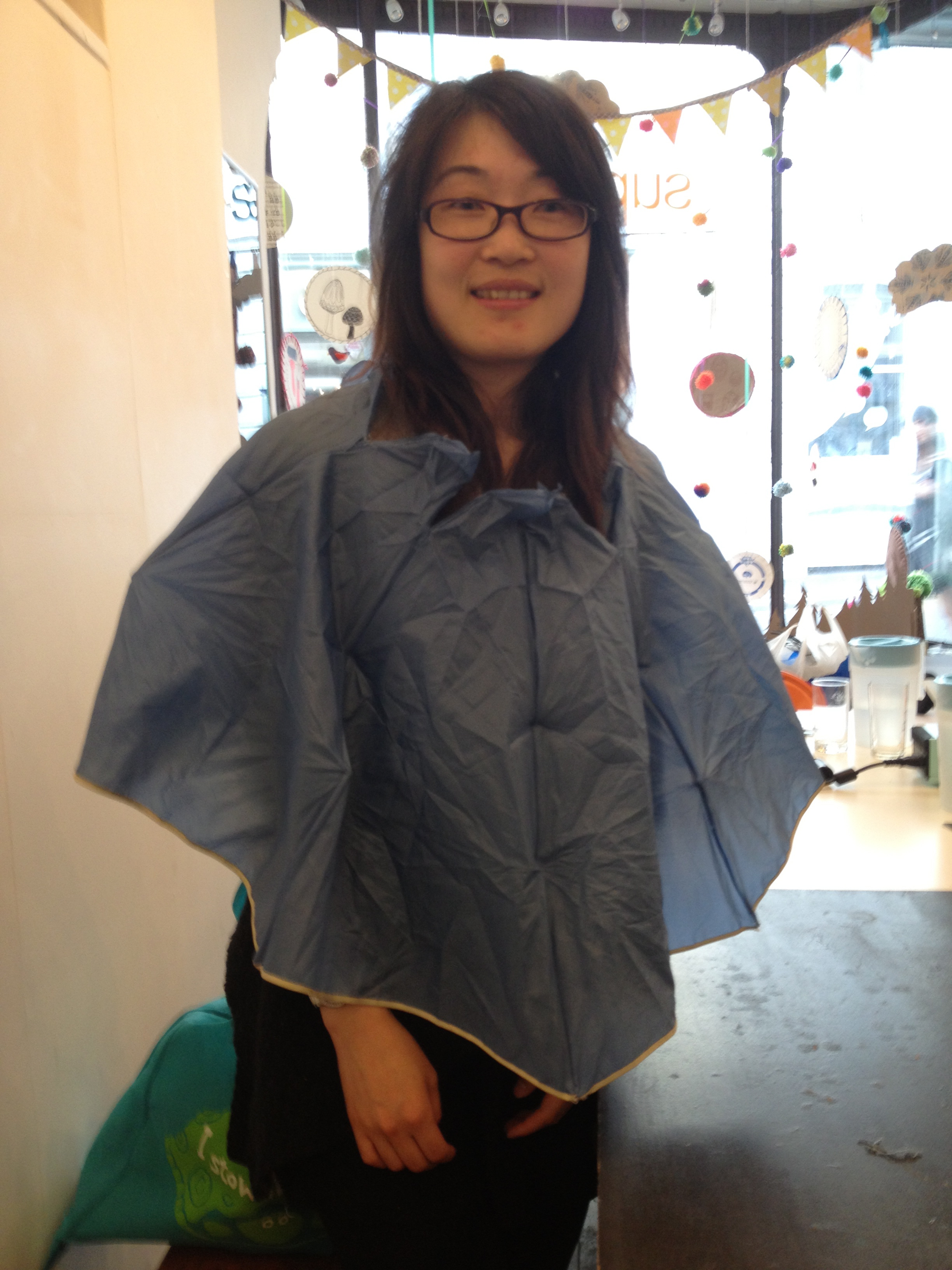 Qingyun turns a broken umbrella into a poncho!