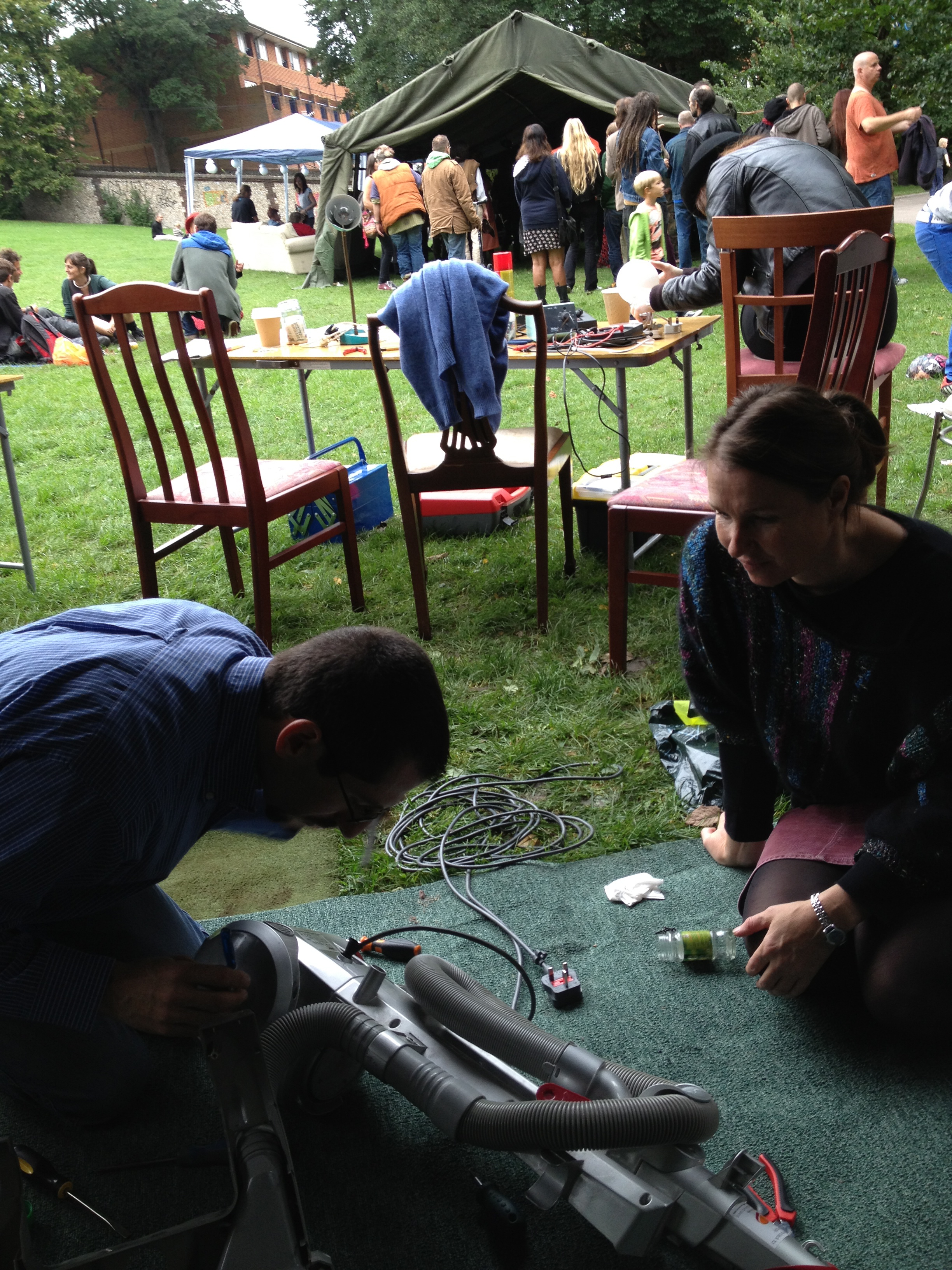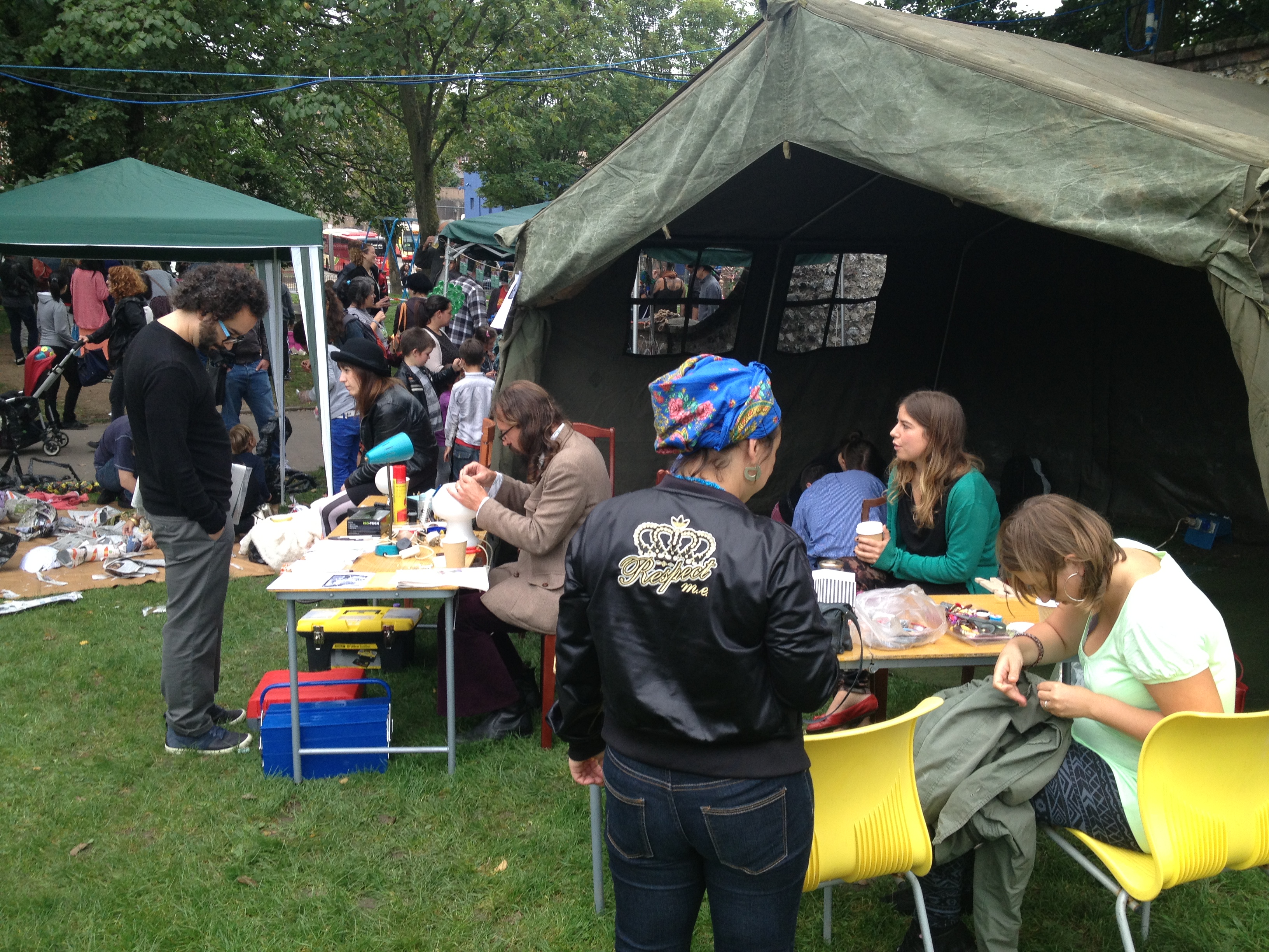 We were invited to hold an outdoor repair café at Magpie’s Eco Festival. The event was held at Magpie’s fantastic Shabitat warehouse where they sell second hand goods from clothes to furniture.
