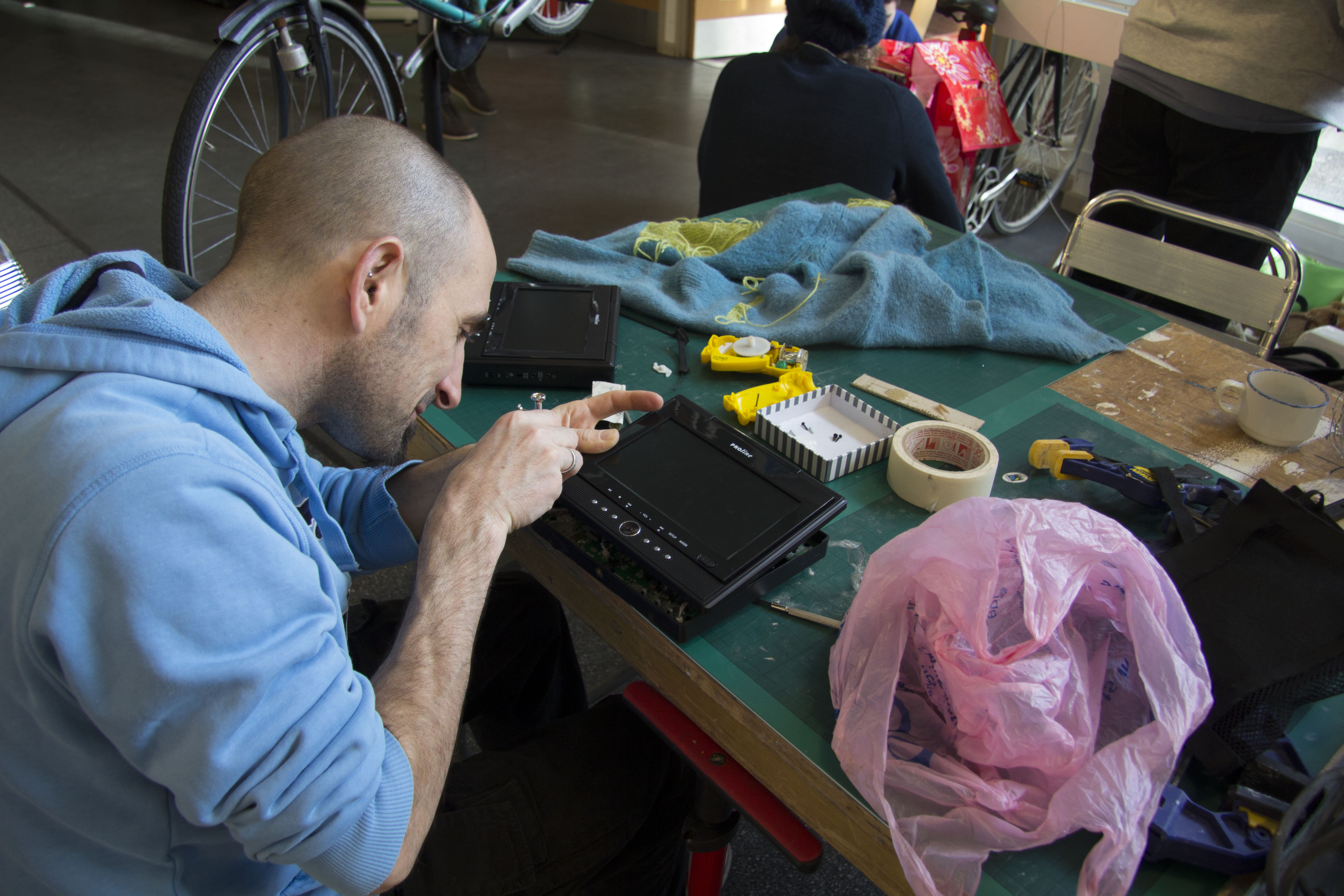 We held a two day repair cafe in the university and enlisted a group of furniture, product and architecture design students from the foundation course at University for the Creative Arts to help people to repair their stuff.