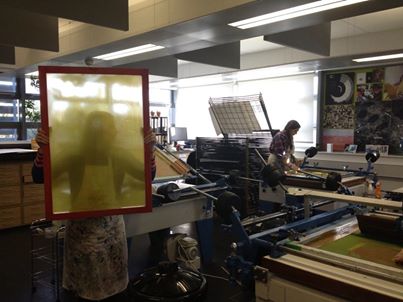 We are in the studio getting ready to screenprint the posters for our 1st birthday party…