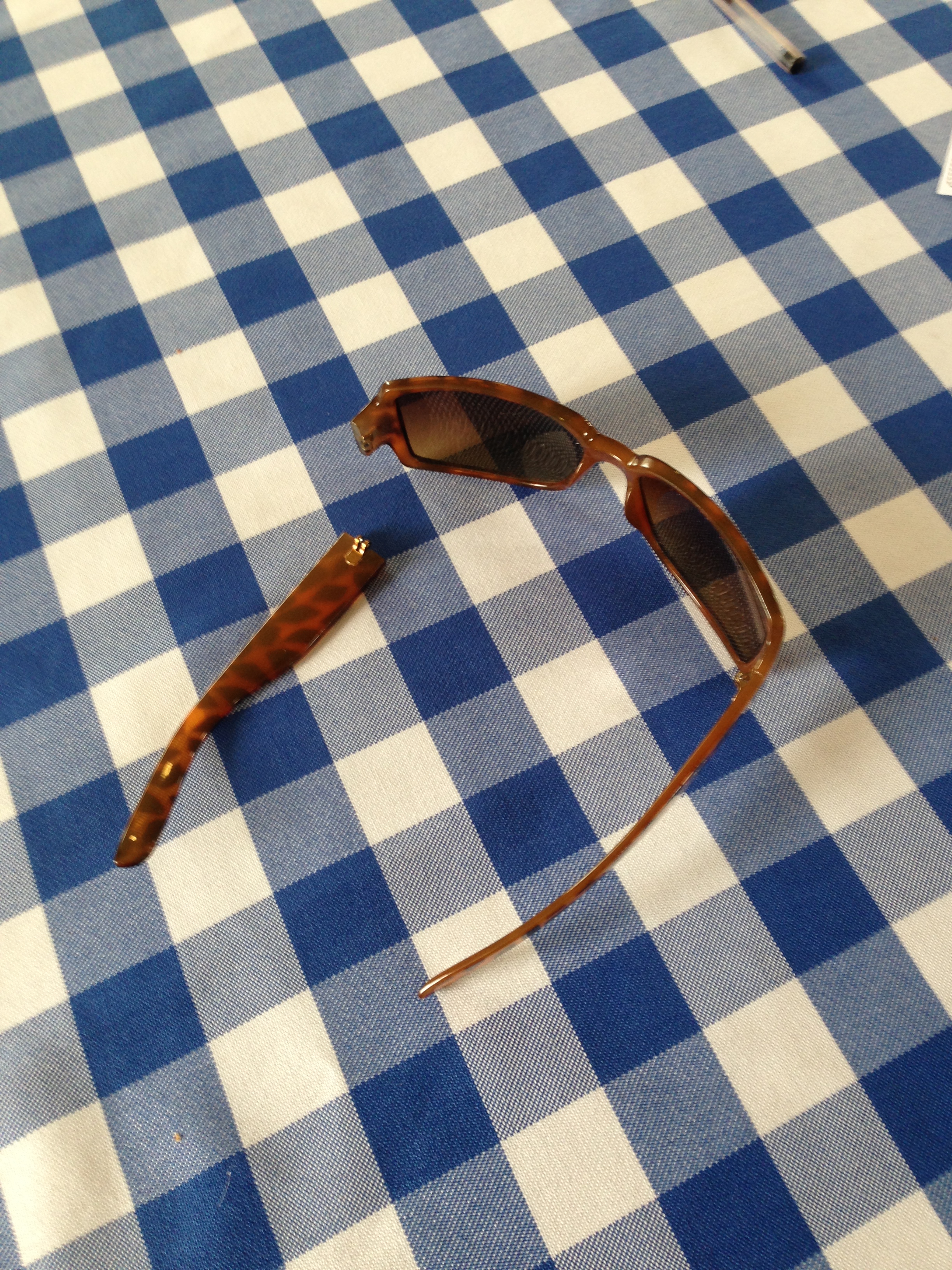 A broken pair of sunglasses was given a temporary fix