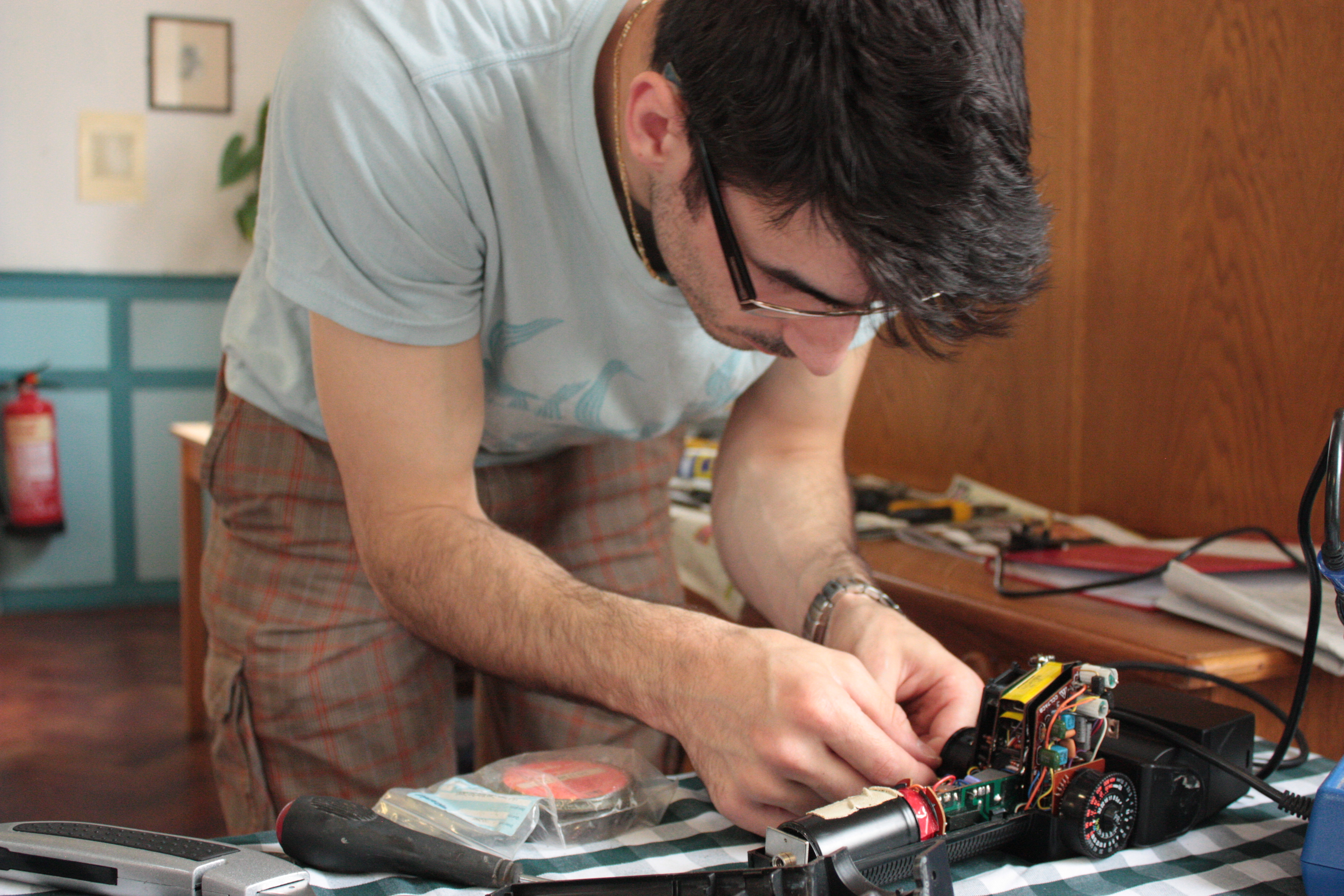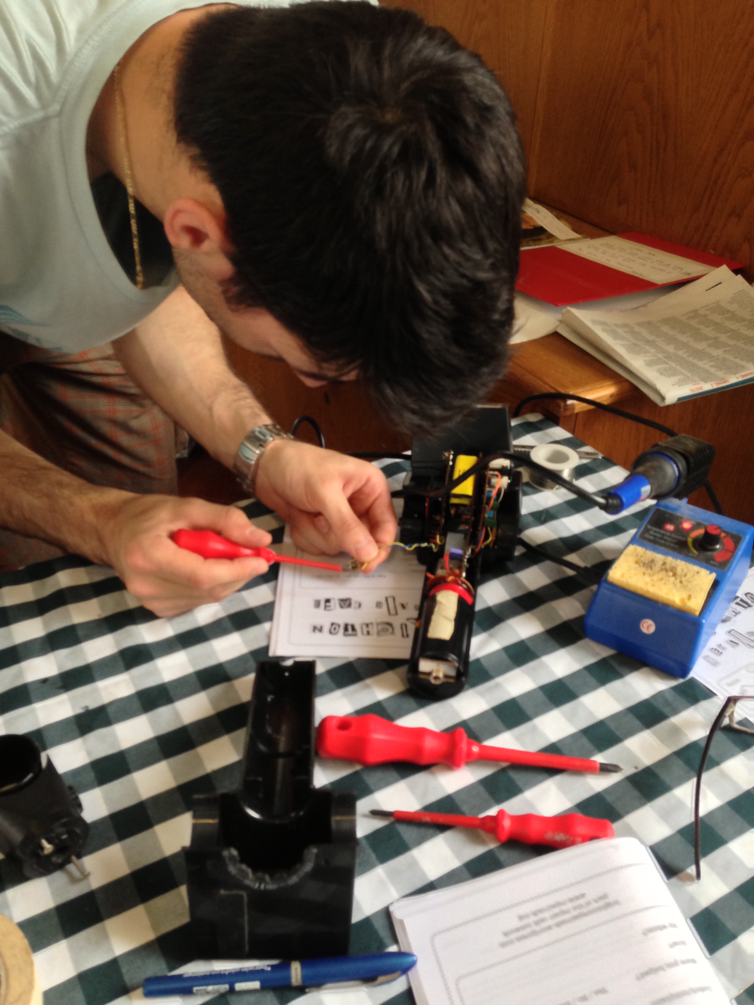 Meanwhile inside Nikolay our new electrical repair volunteer analysed why Amanda Jackson‘s camera flash gun was not working.