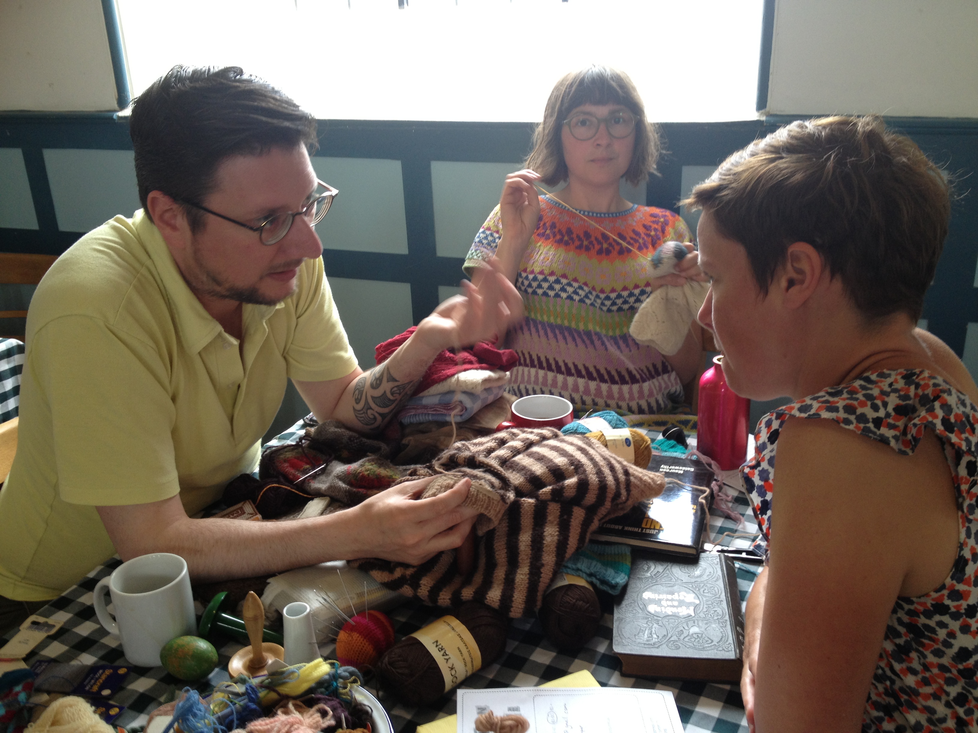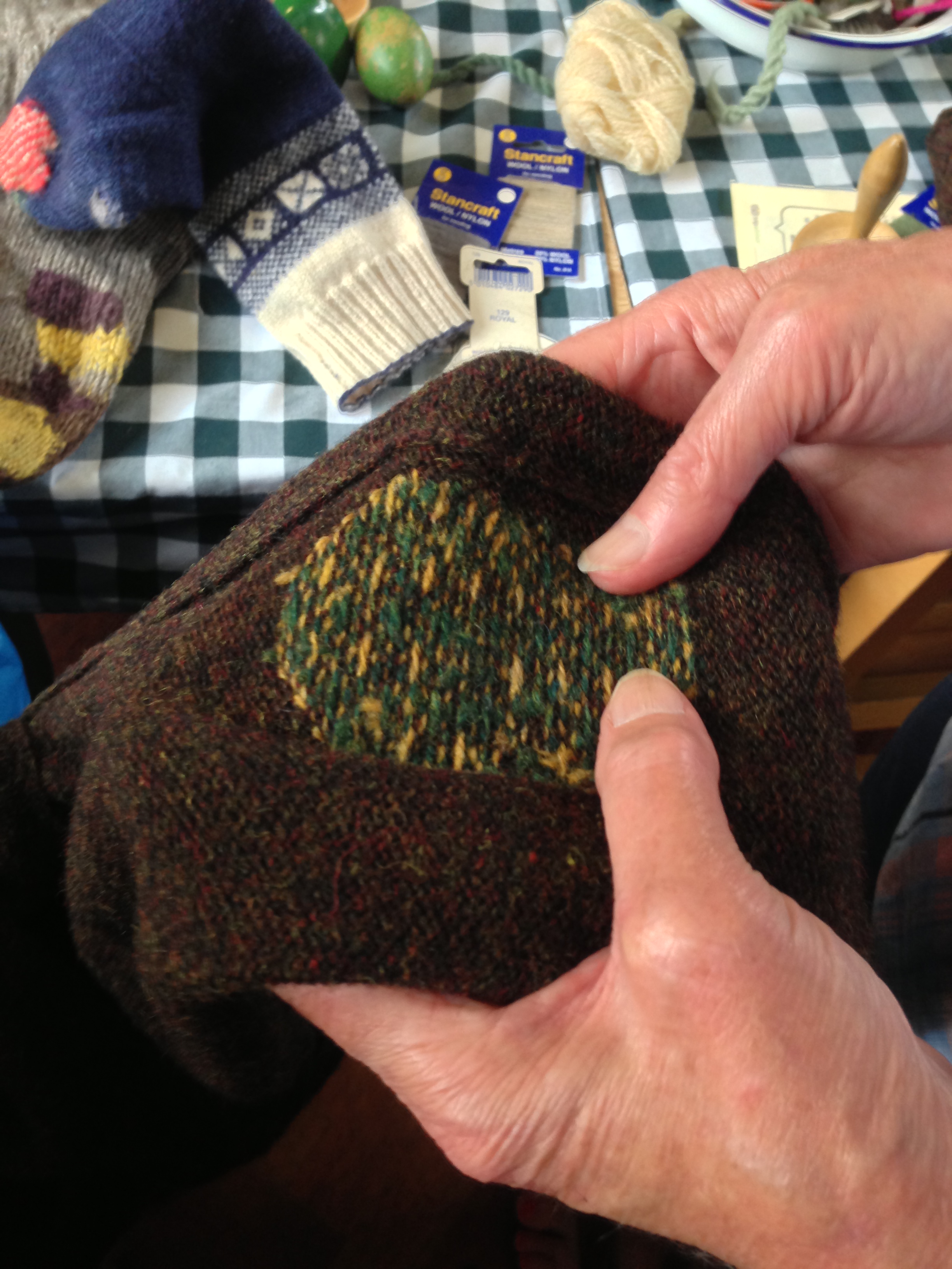 Anna (who had knitted the dress she wore that day) finished some beautiful visible mending darning on her sock