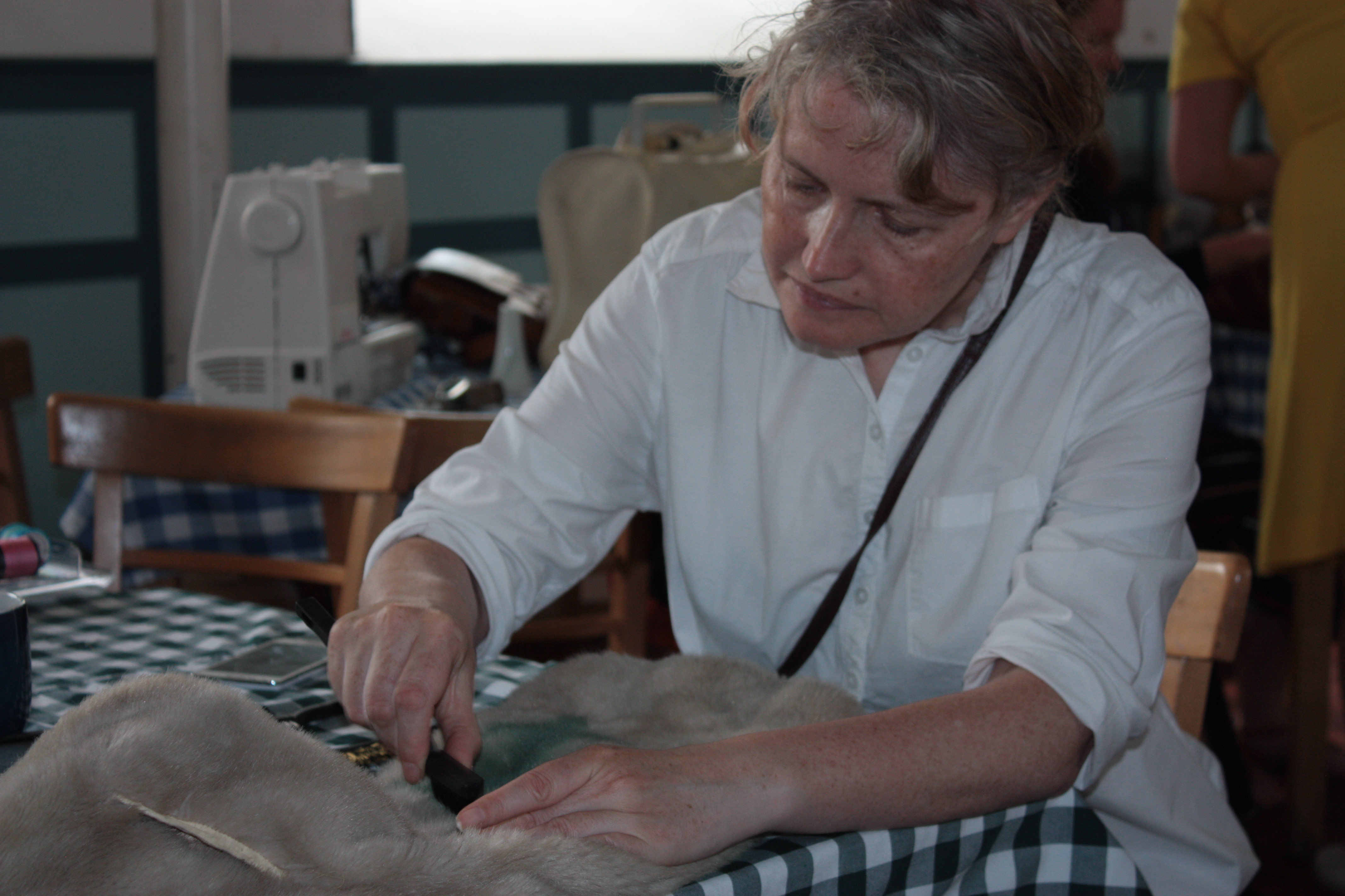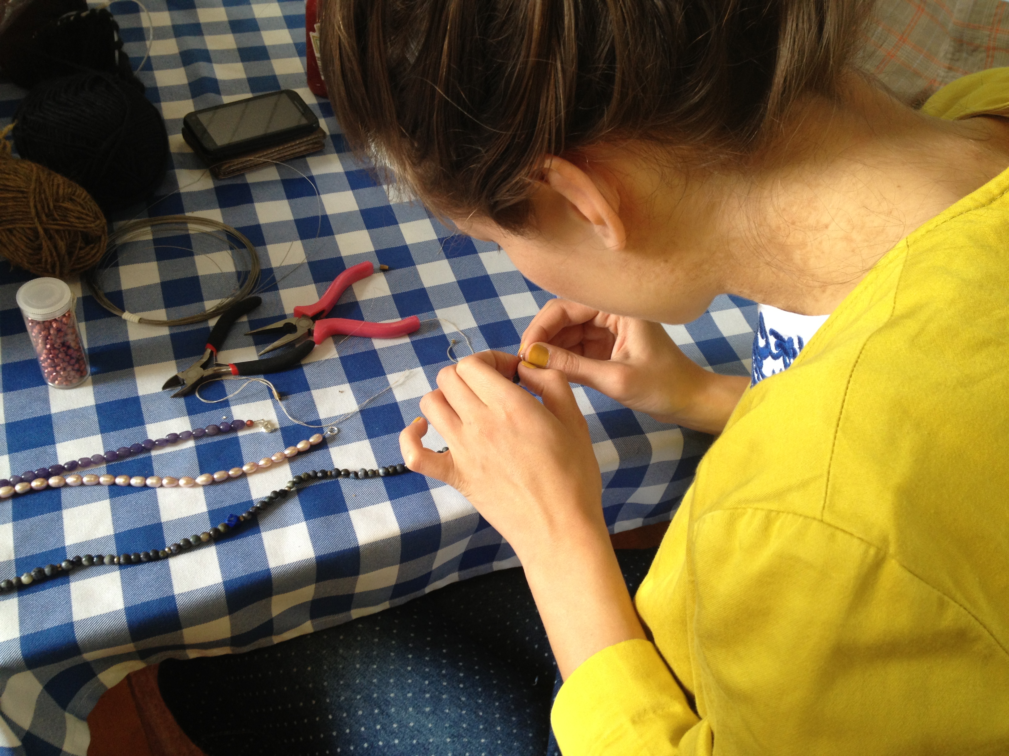 Izzie over-saw some fiddly rethreading of beaded necklaces.