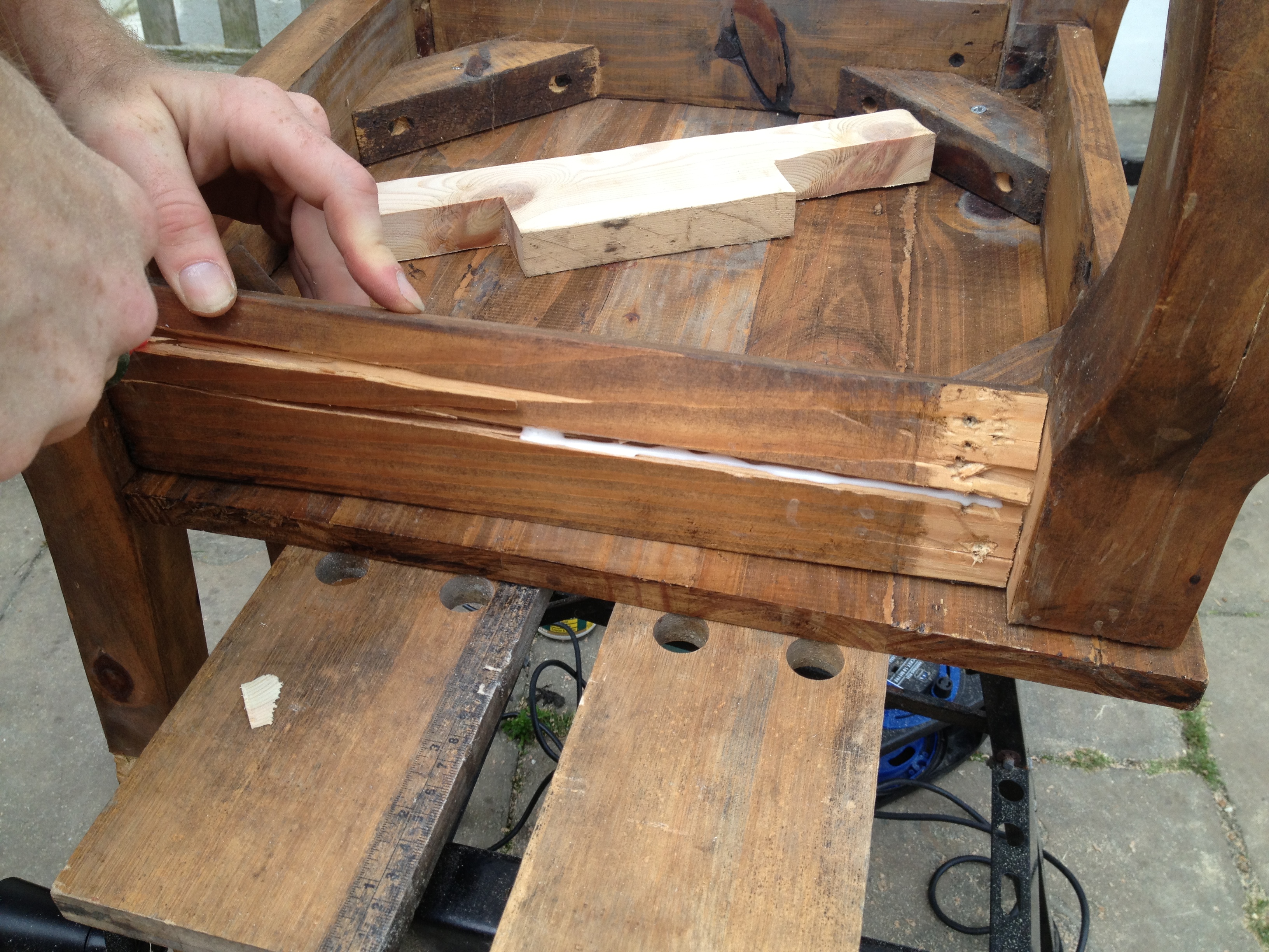Then wood glue was used to hold the split seat rail together