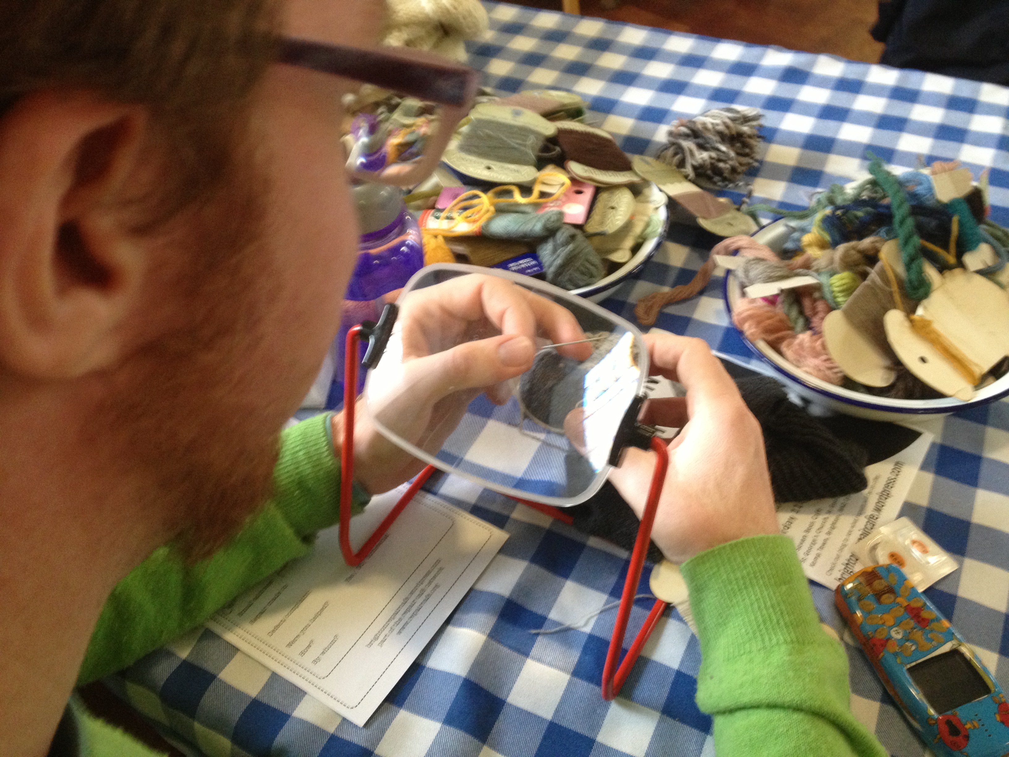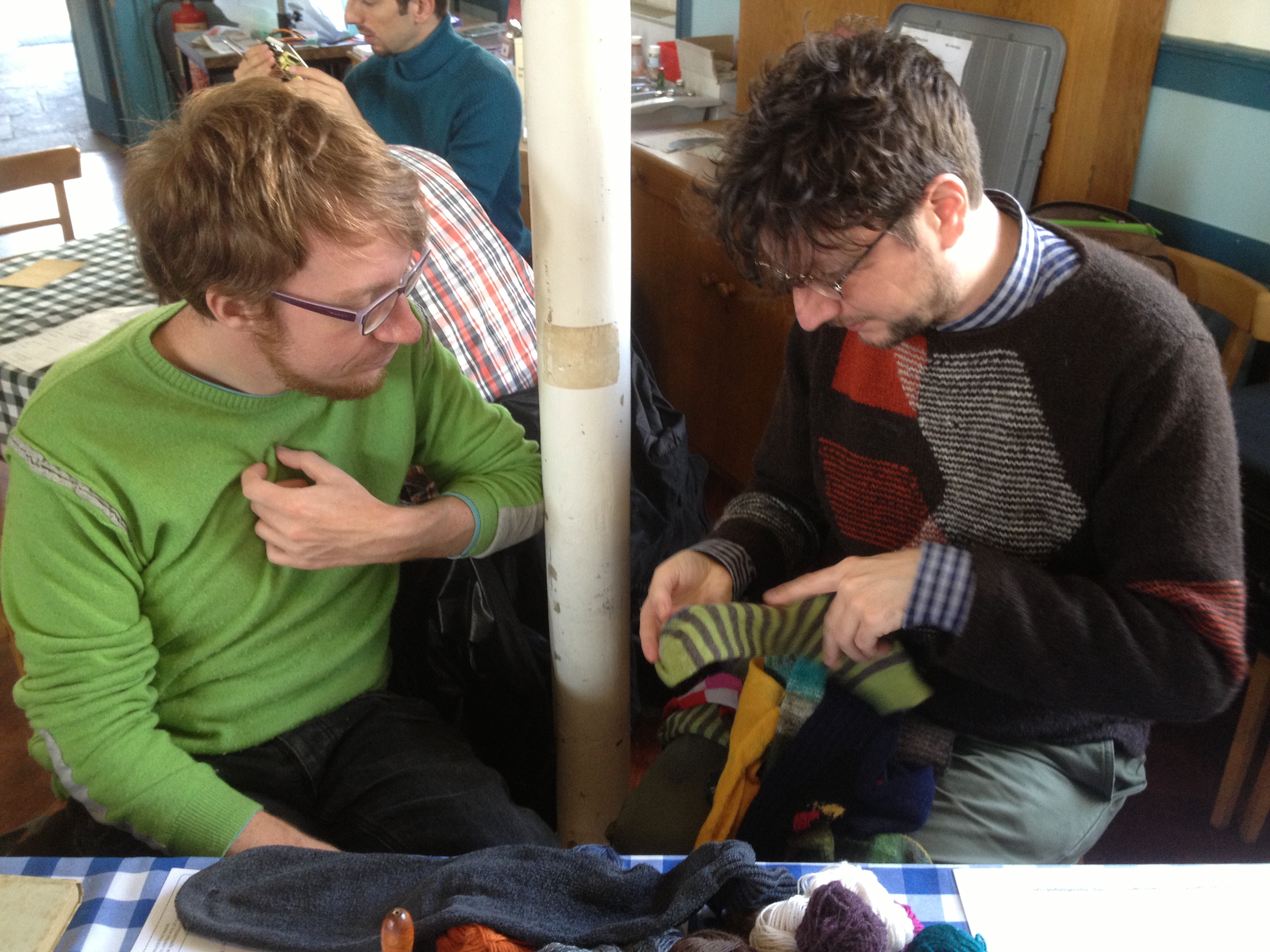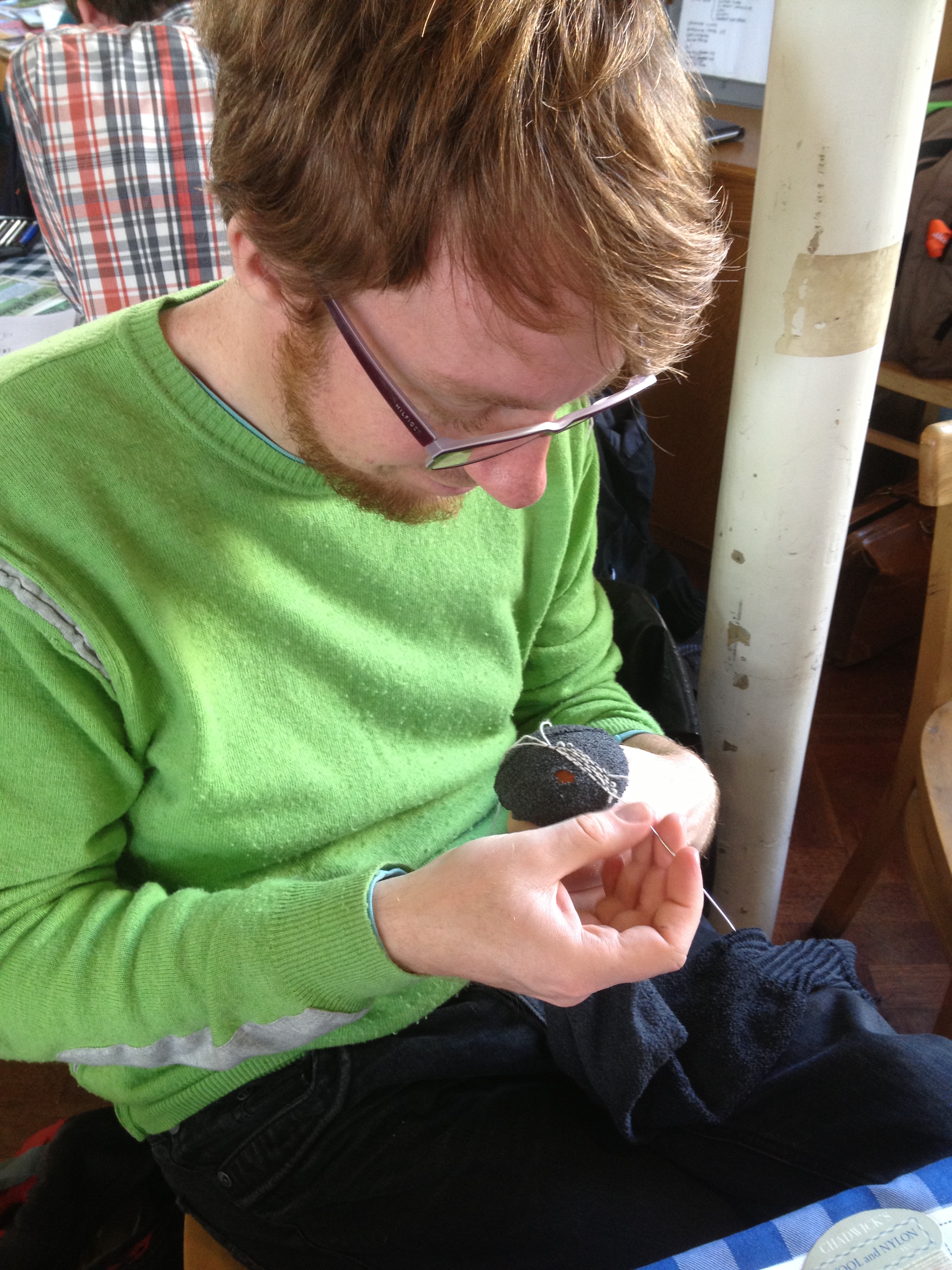 Tom initiated a new darner into the world of visible mending