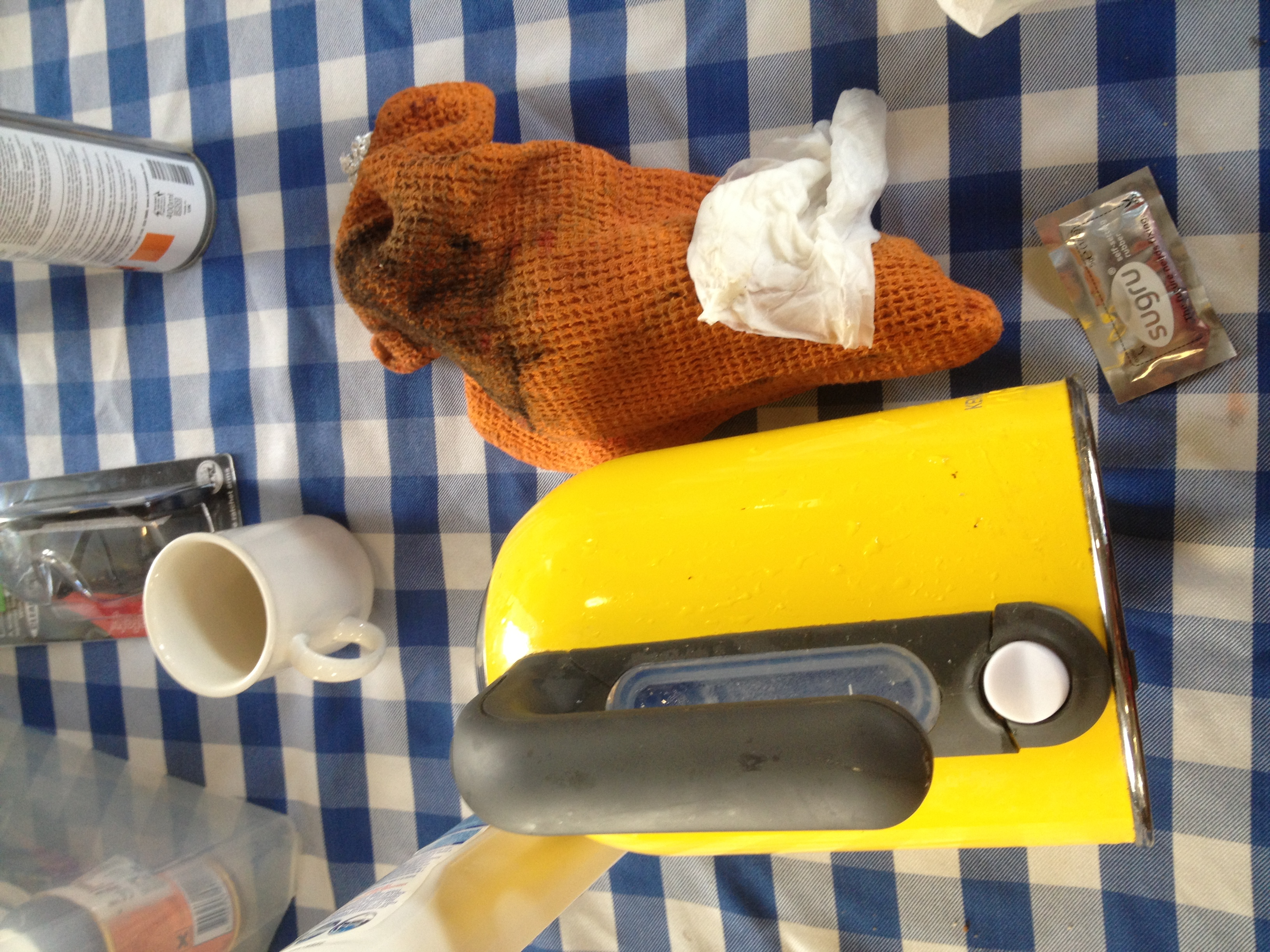 Tom brought along his kettle with a cracked broken handle.