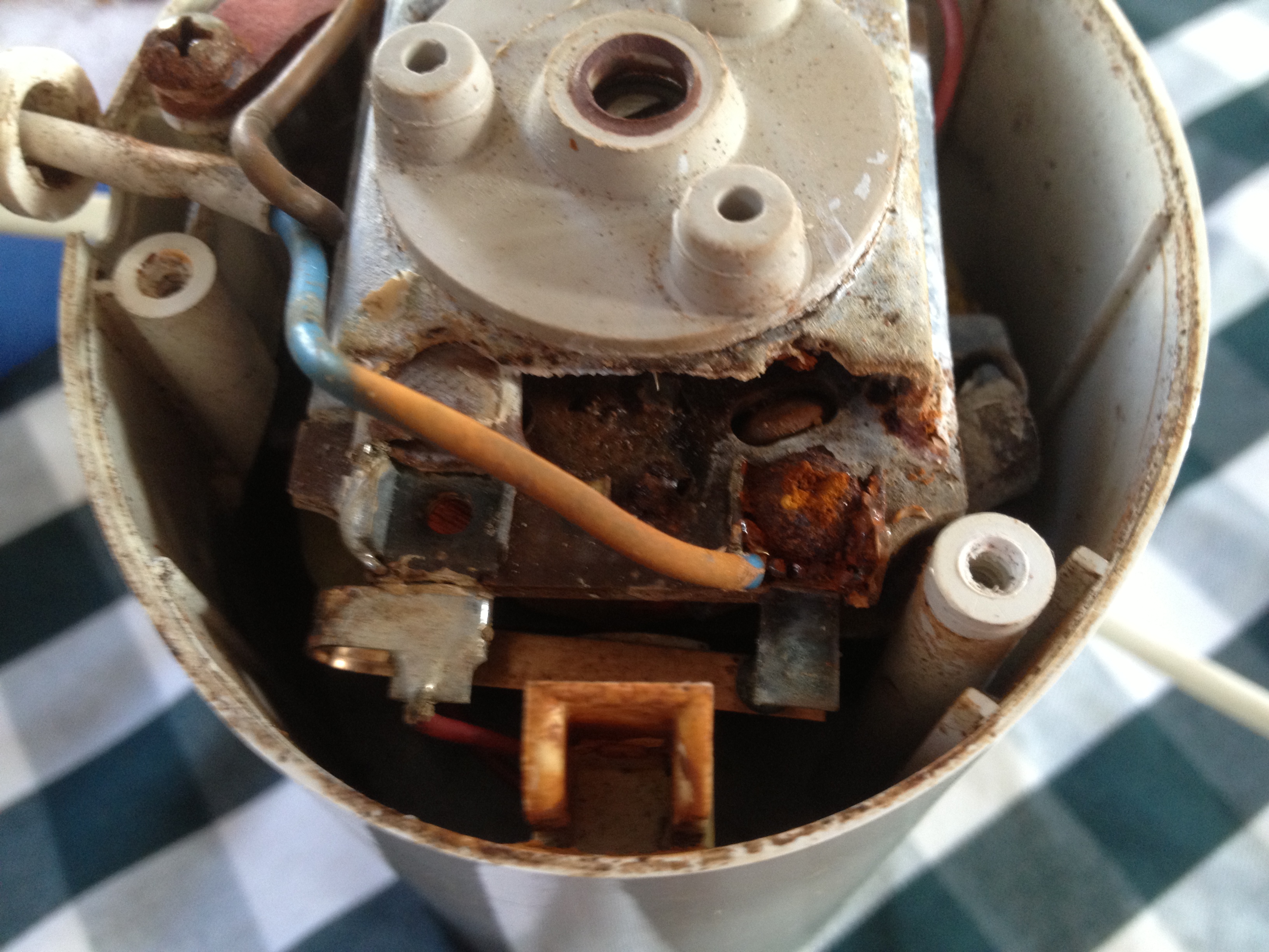 After he had cleaned the surfaces and scored the metal where it contacted the plastic parts