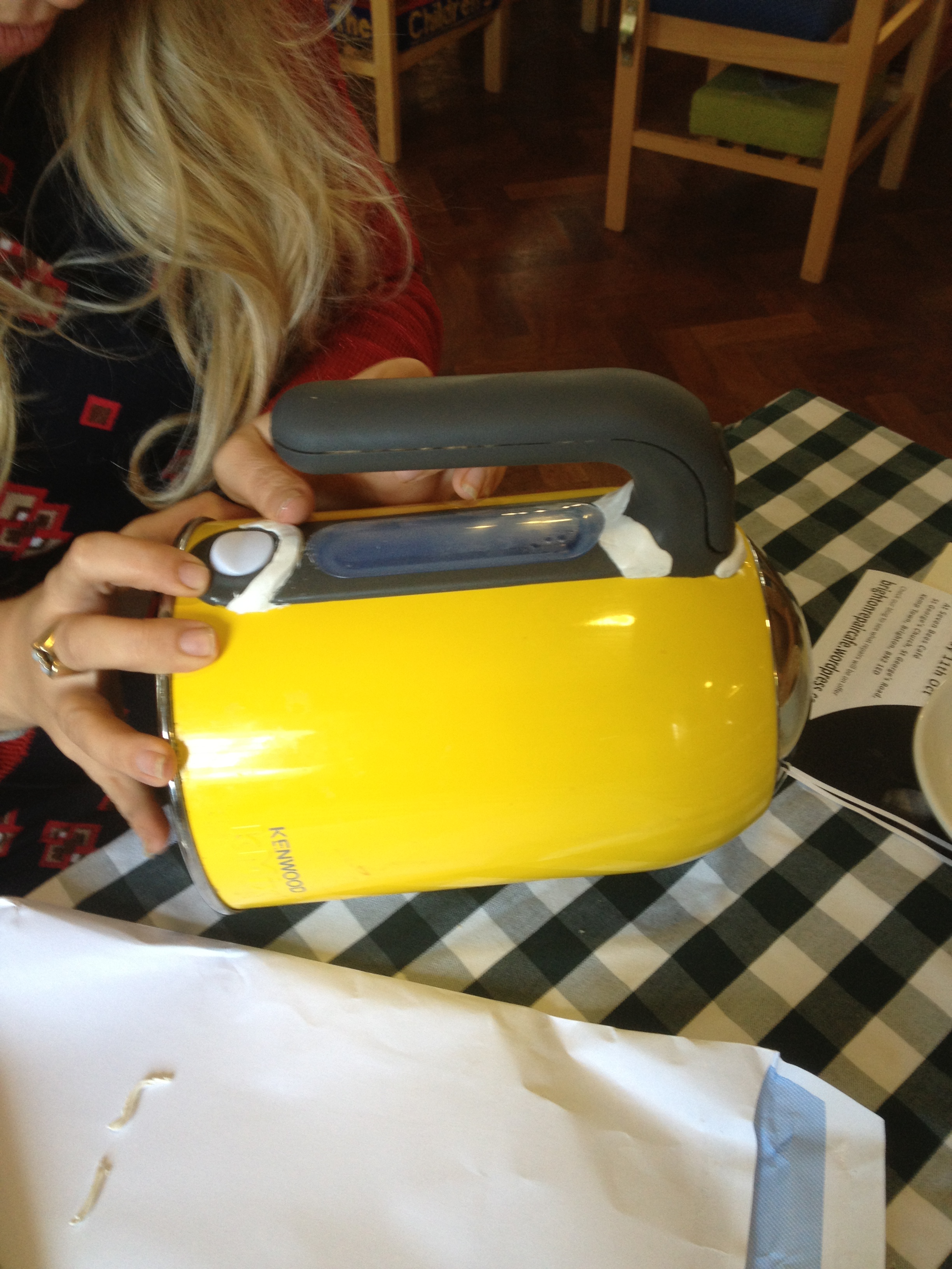 Victoria then formed Sugru (a mouldable glue that turns into rubber) and used it to re-attach the handle and seal the cracks.