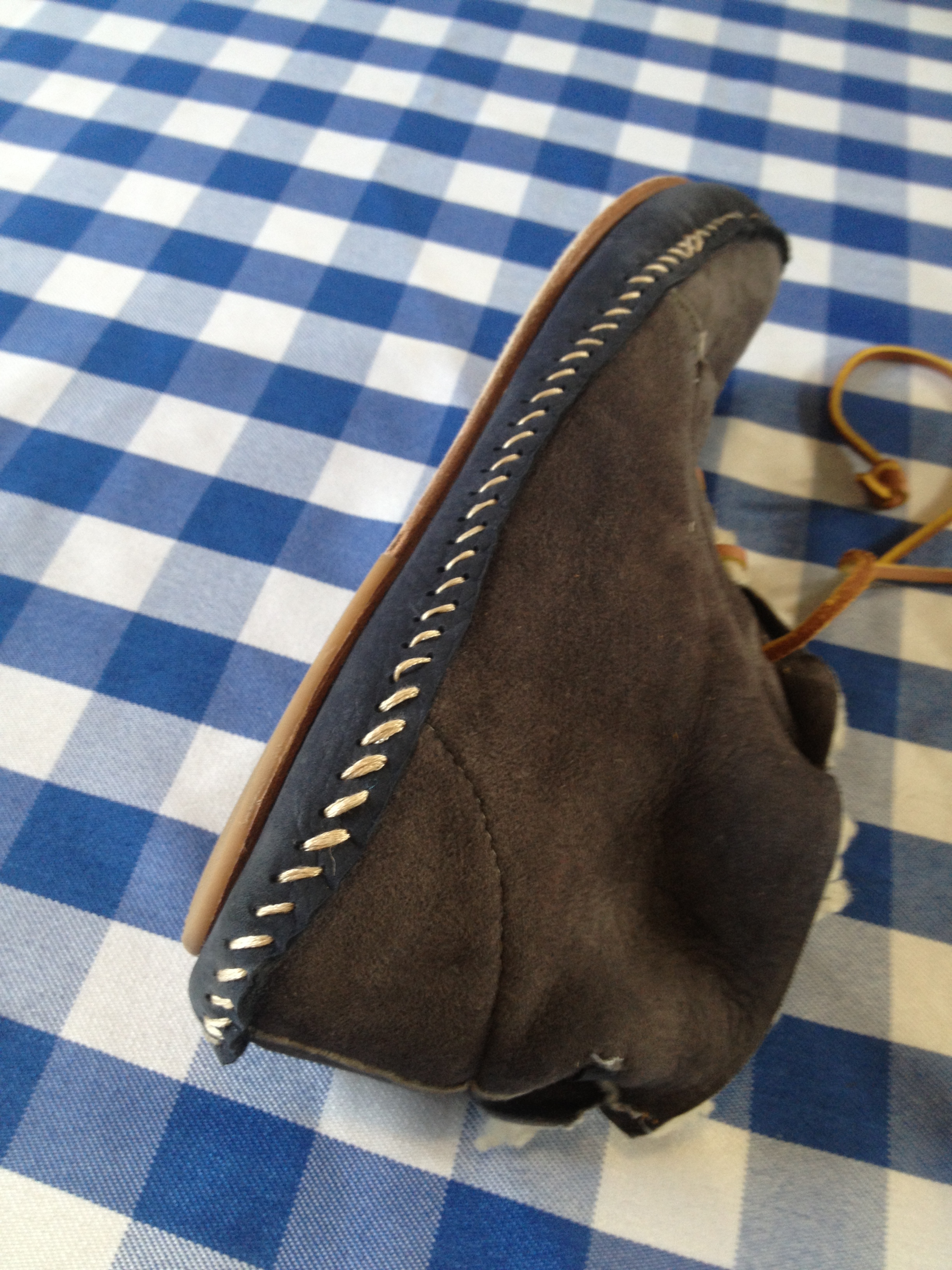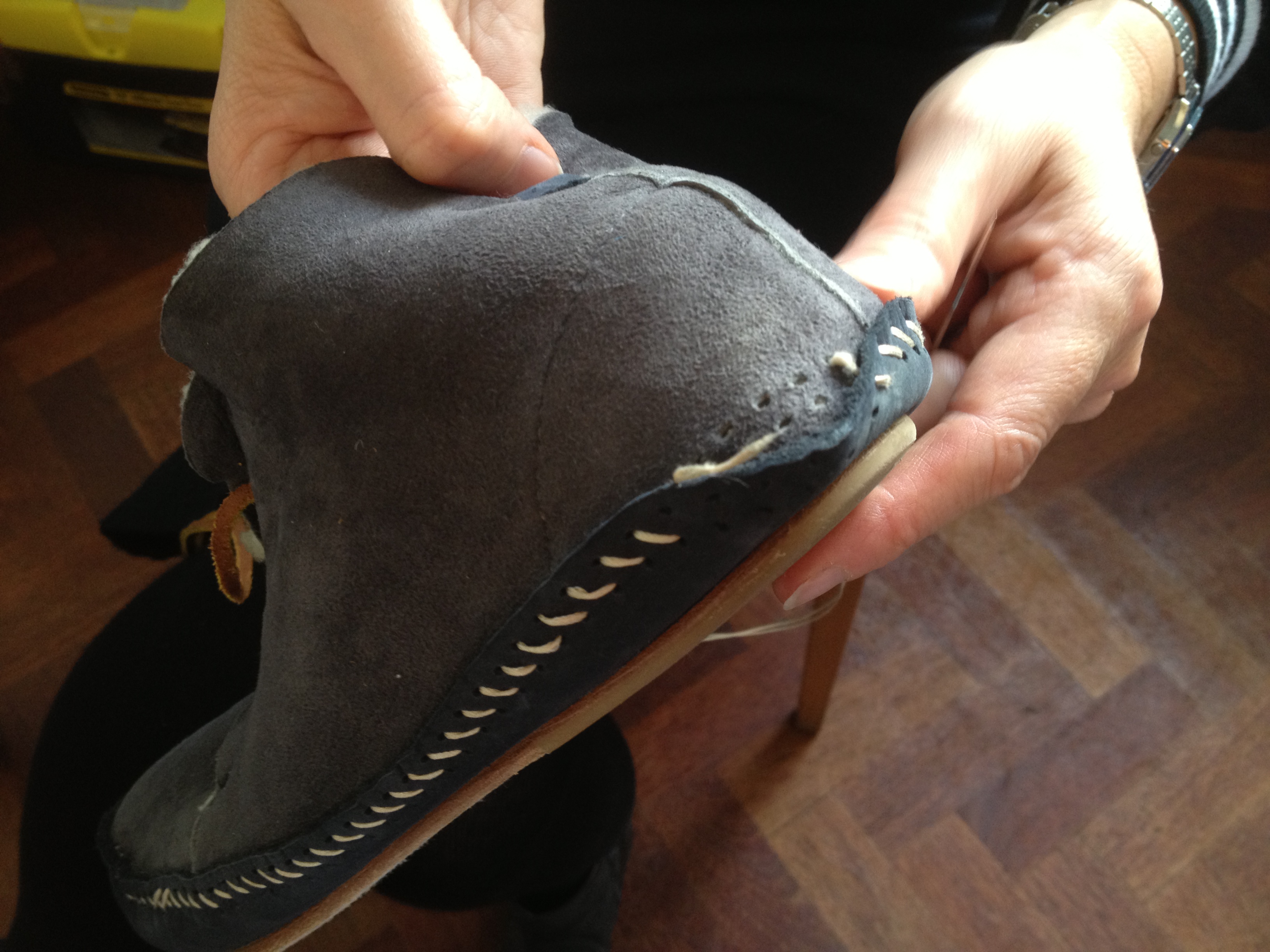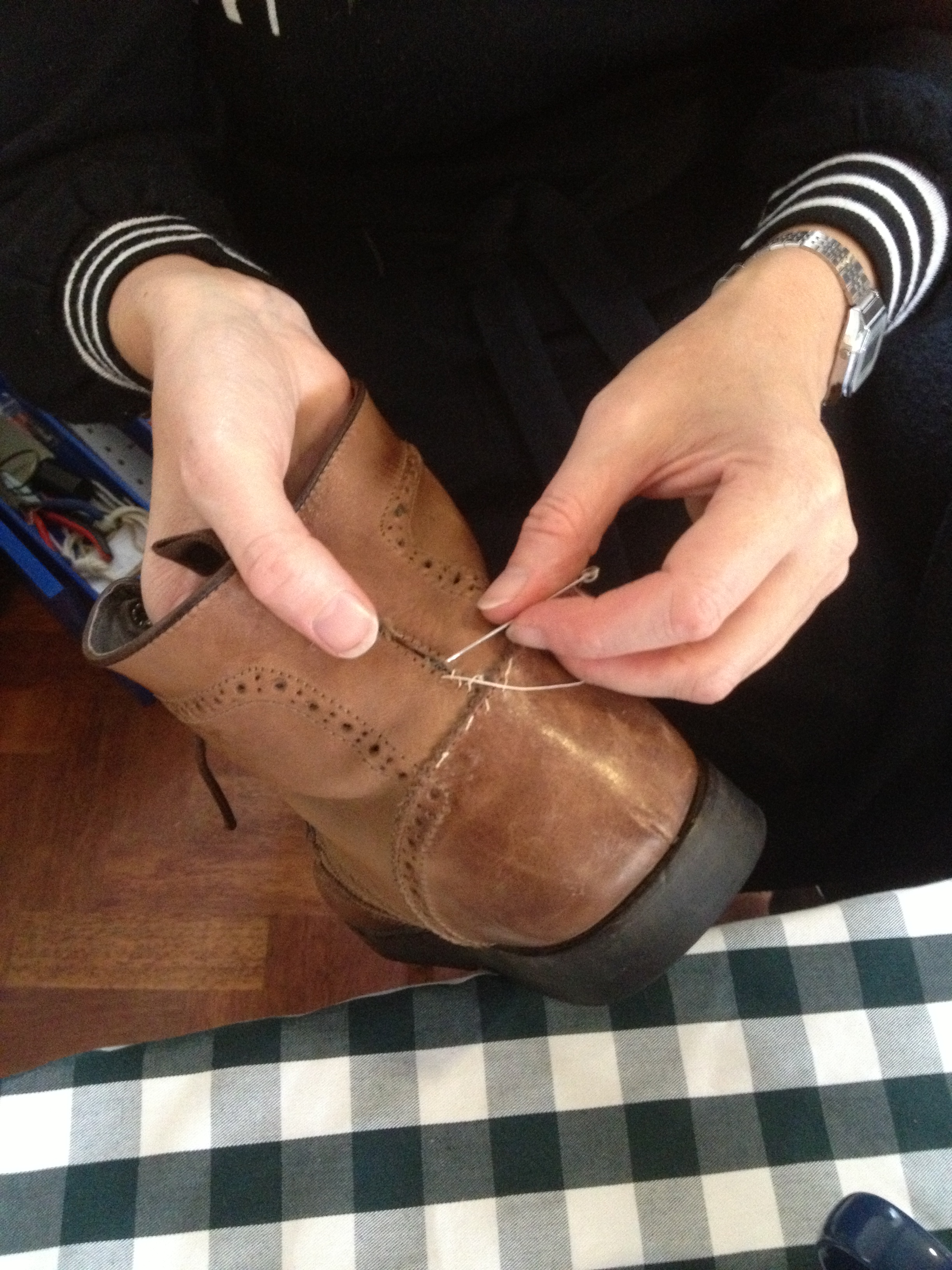 Ross brought along a lovely pair of boots with loose stitching.
