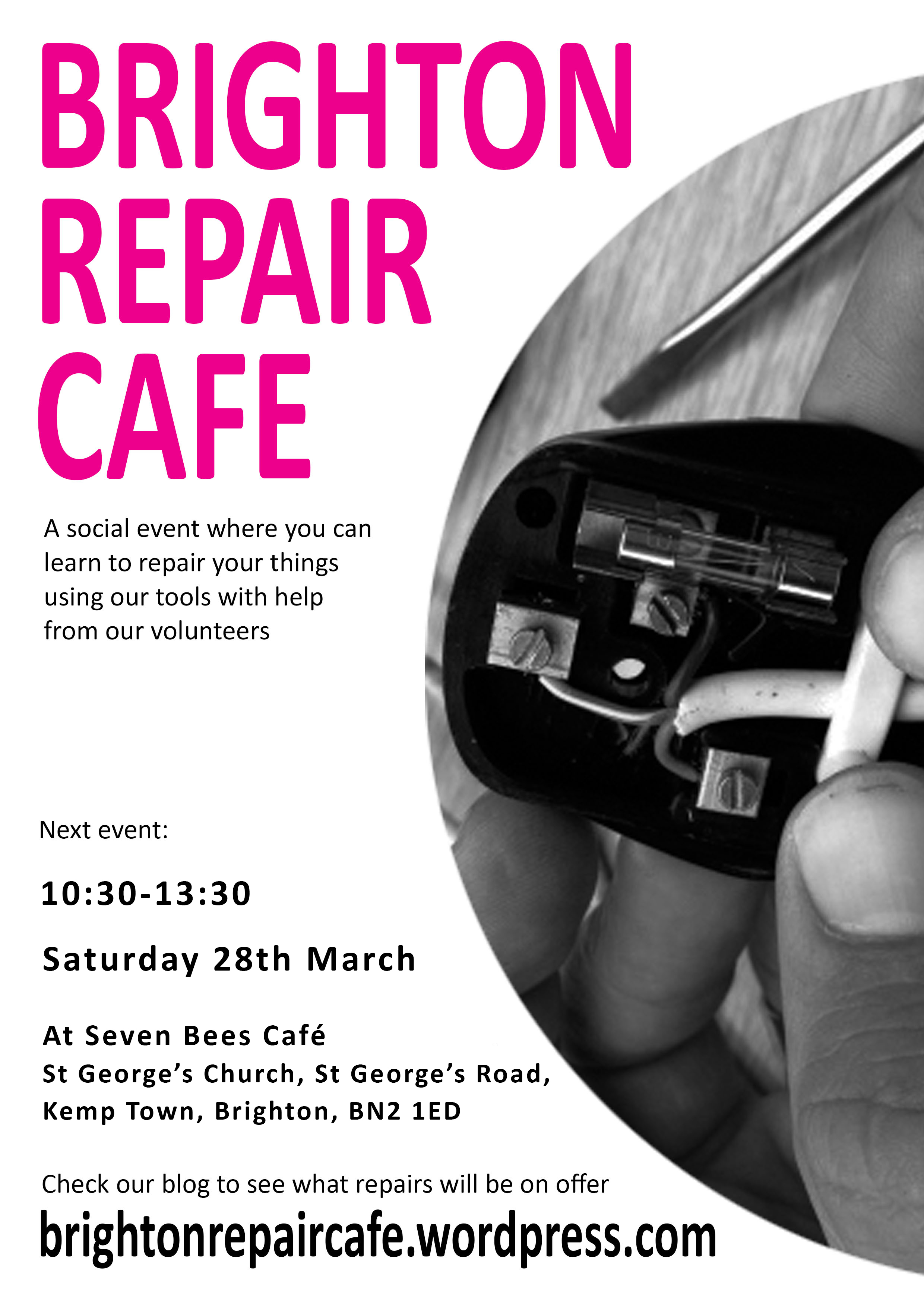 At our next event on 28th March 10:30-13:30 at St George’s Church, Kemp Town we will be able to help you with the following repairs:
