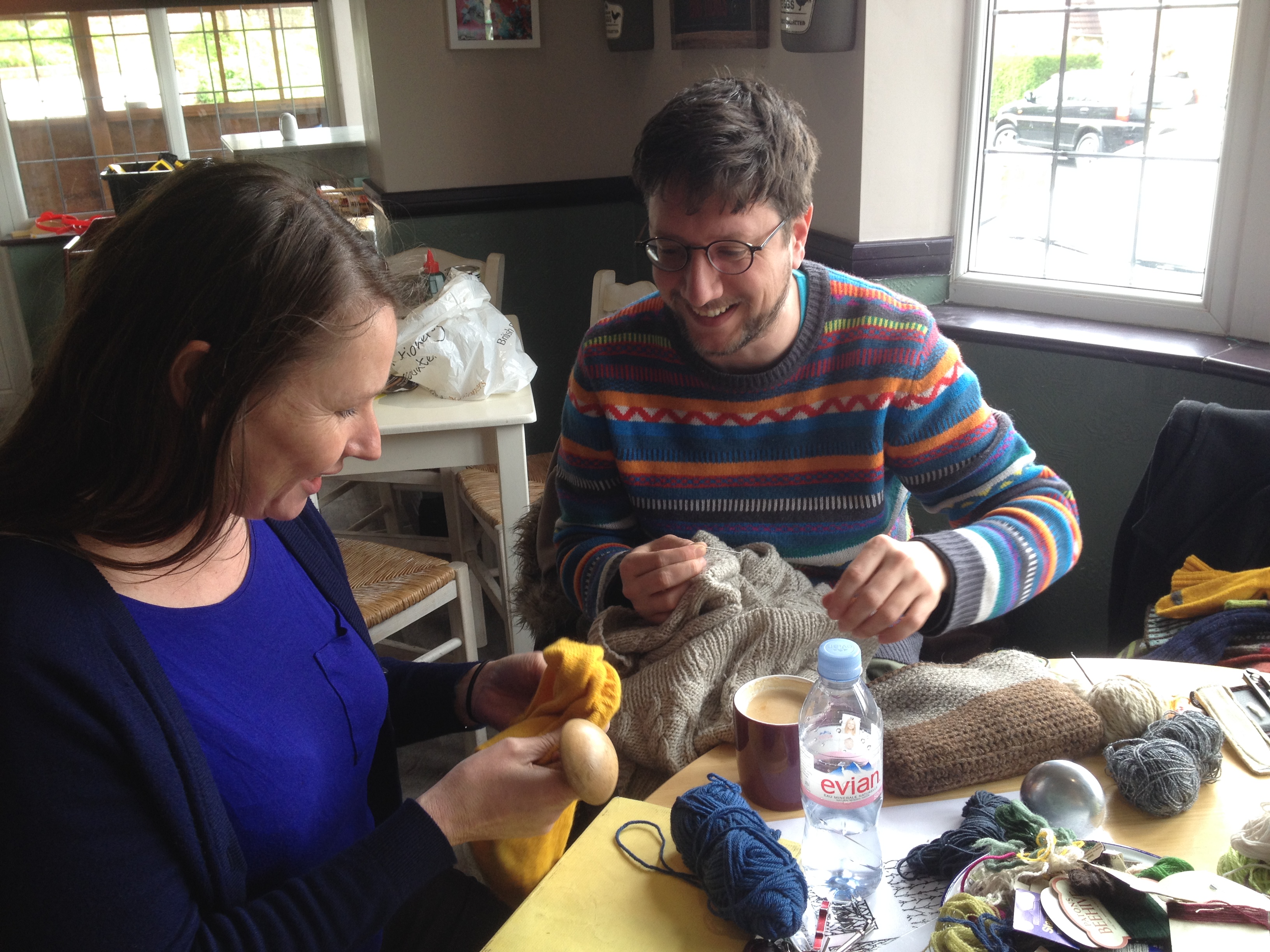 Tom brought along his darning to help him demonstrate to others how to create beautiful visible mends through using contrasting threads