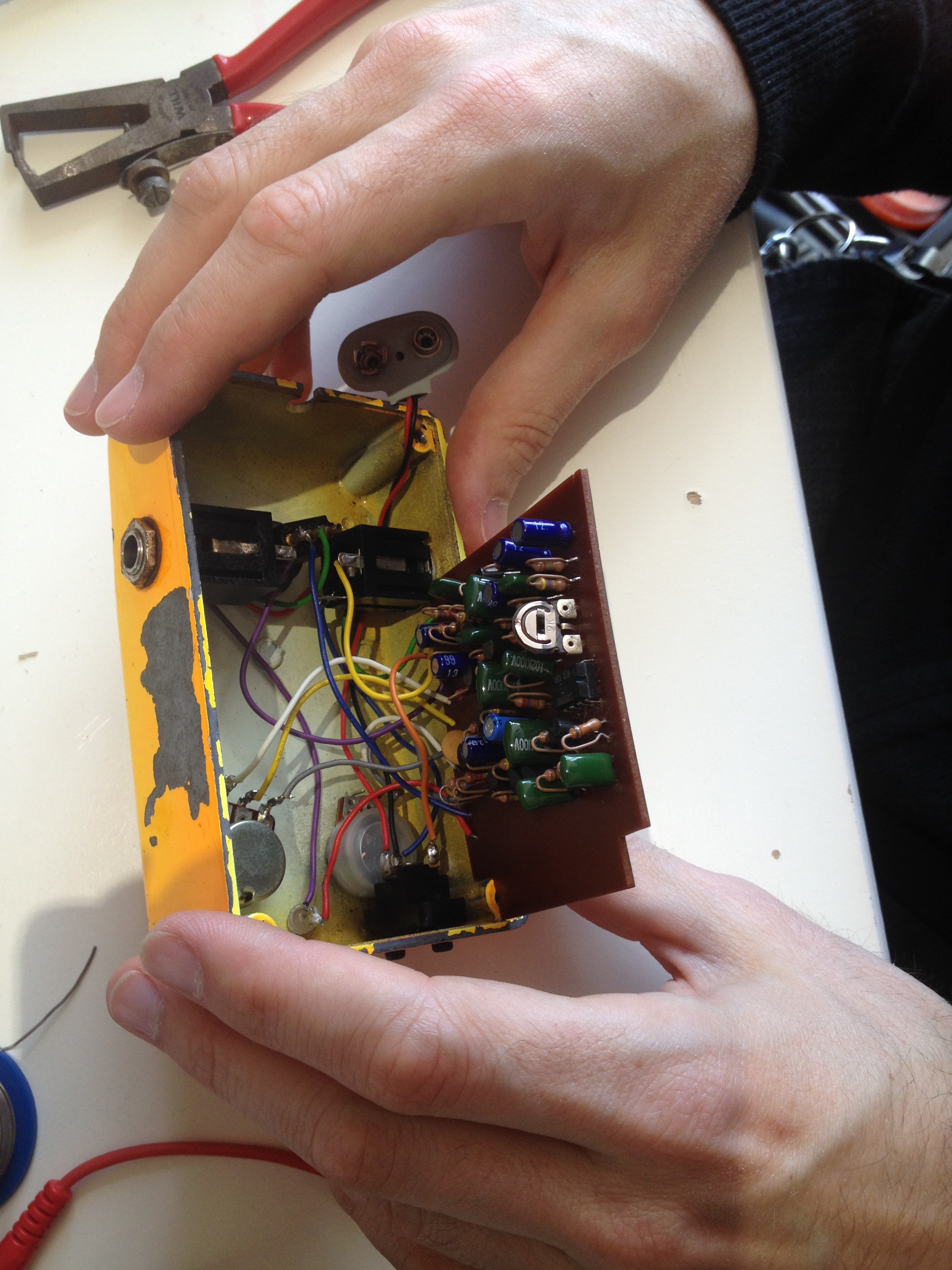 The guitar pedal that was diagnosed at a previous repair cafe