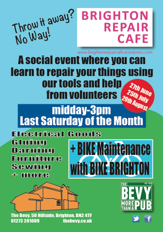 We will have volunteers on hand to show you how to repair your broken electrical goods and things that need gluing, as well as any clothing that needs sewing or darning.